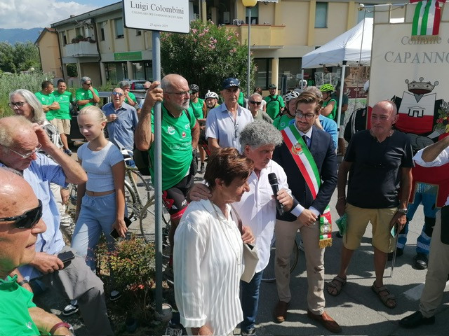 L' intitolazione a Luigi Colombini del percorso ciclabile di Lunata da Via Martiri Lunatesi a Via del Casalino fino all' incrocio con la Via Pesciatina è ora ufficiale. Il vice sindaco di Capannori Matteo Francesconi in rappresentanza dell' amministrazione comunale di Capannori ha scoperto la targa nell' ambito della manifestazione La Vinaria di Roberto Lencioni alla presenza di molti sportivi, degli assessori Gaetano Ceccarelli e Silvana Pisani, dei consiglieri comunali Marianna Modestino e Antonio Cipriani, mentre della famiglia Colombini erano presenti la figlia Laura ed il nipote Ido. Per la F.C.I. sono intervenuti il presidente del comitato provinciale di Lucca Pierluigi Castellani, il vice presidente nazionale F.C.I. Saverio Metti ed il consigliere F.C.I. nazionale Laura Puccetti. Molti i rappresentanti del ciclismo fra i quali gli ex campioni Franco Bitossi, acclamatissimo dai numerosi sportivi, dedicandosi a firmare autografi ai suoi tanti ammiratori che ancora si ricordano dei suoi successi in una carriera che ebbe fine a livello agonistico nel 1978, Roberto Poggiali ed il patron sportivo più vittorioso di tutti tempi a Lucca Ivano Fanini. Il ciclismo lucchese era inoltre rappresentato dall' organizzatore del Giro della Toscana femminile Brunello Fanini, dal saggio del ciclismo Pierluigi Poli e dai presidenti del Gragnano Carlo Palandri , del Ciclo Team San Ginese Claudio Andolfi e di Marlia Bike Amedeo Bandoni, oltre che dall' ex D.S. Piero Pieroni e dagli ex ciclisti Camilli, Avanzinelli, Ivano Palmerini ed altri. Dopo vari interventi in ricordo del calzolaio che modellava gli scarpini ai grandi campioni, ha avuto luogo con la benedizione del parroco Don Michele Fabbrini la pedalata lungo il percorso ciclabile appena intitolato grazie all' idea lanciata anni fa da Roberto Lencioni, apprezzato meccanico per decenni delle più importanti squadre professionistiche non che plurivittorioso ciclista delle squadre Fanini, e concretizzata dall' estenuante impegno di Stefano Bendinelli, il direttore del Museo Fanini.