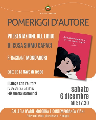 Proseguono gli incontri alla Galleria d’arte moderna e contemporanea Viani. Prossimo appuntamento sabato 6 dicembre alle 17,30: per la rassegna “Pomeriggi d’autore”, è in programma la presentazione del libro “Di cosa siamo capaci” di Sebastiano Mondadori, edito da La Nave di Teseo. Dialoga con l’autore l’assessora Elisabetta Matteucci.
