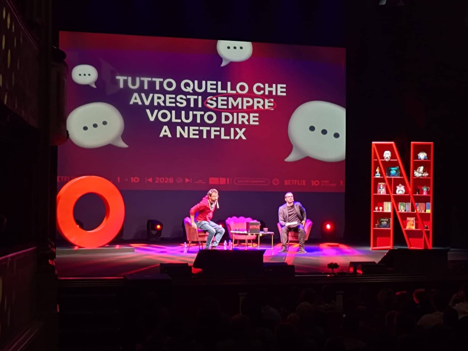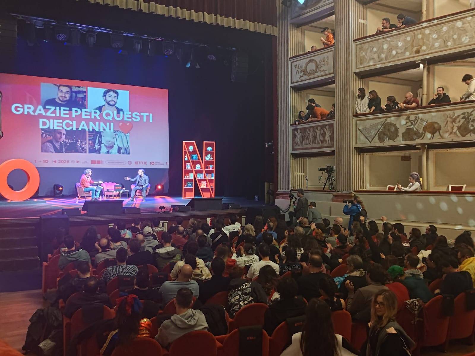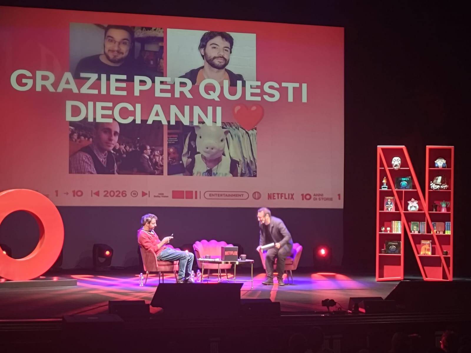11 anni dopo che Yotobi (Karim Musa) aveva profetizzato che Netflix in Italia non ci sarebbe arrivato mai, eccolo a celebrare i dieci anni di quest’approdo con Stefano Rapone: è successo questa mattina al teatro del Giglio, dove tra ospiti e giochi questi due presentatori d’eccezione hanno coinvolto il pubblico nel varietà più nerd che si potesse immaginare.