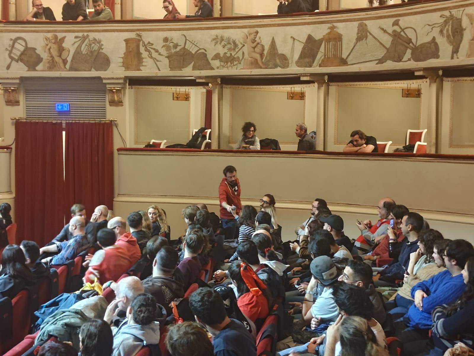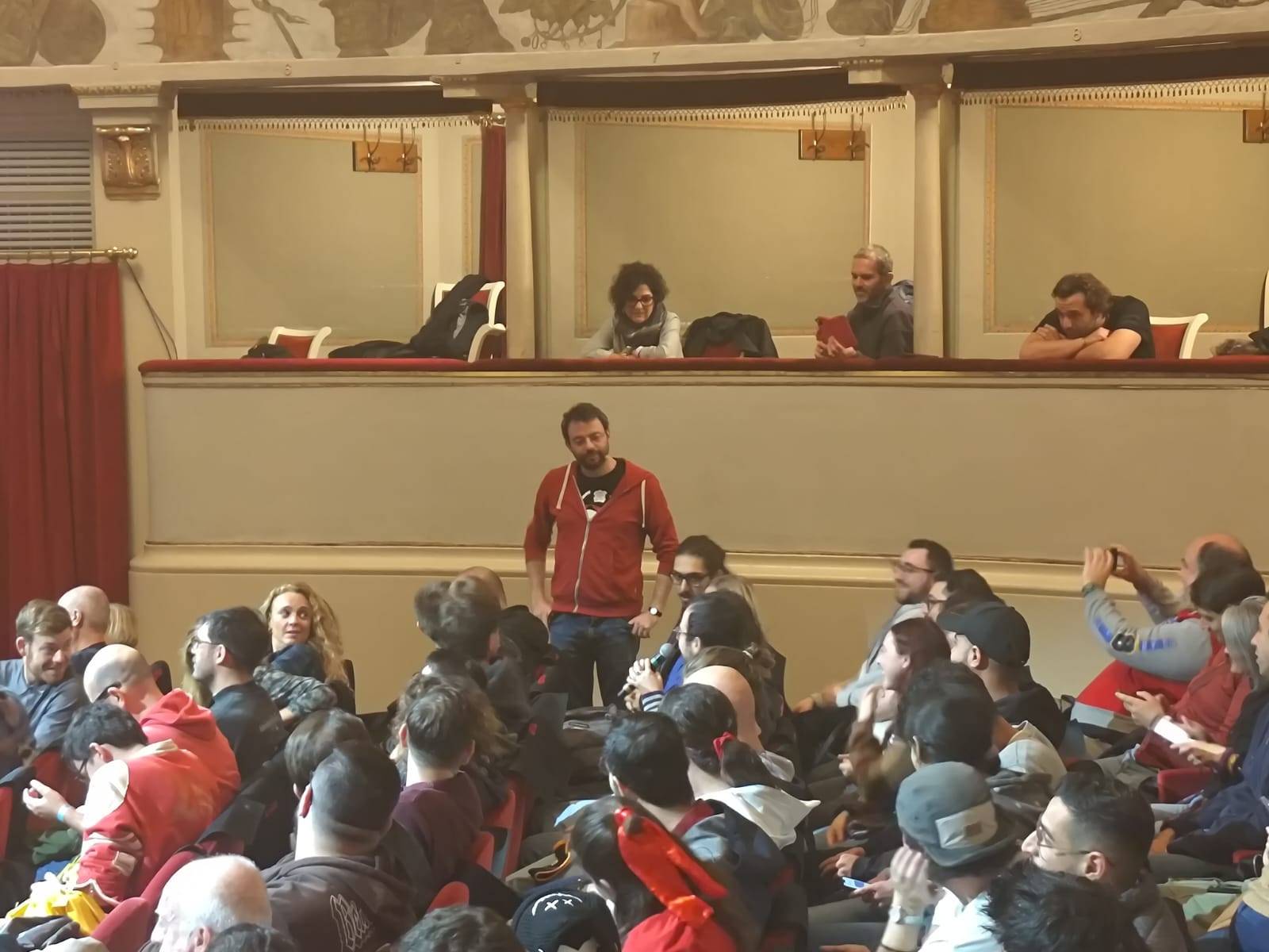 “Era il numero uno, e lo è tuttora nei nostri cuori. Era quello vero”, ha cercato di suggerire Rapone, al che Zerocalcare ha risposto, un po’ incerto: “A me viene in mente solo il Pacciani”. Alla fine ci è però arrivato sulla base di “L’ha interpretato Anthony Hopkins che ha fatto solo ruoli simili, si è licenziato da un lavoro in cui non lo potresti fare”: il fumettista è uscito quindi di scena da vincitore, con la promessa che avrebbe potuto prendere un oggetto di suo gradimento dalla libreria parte della scenografia sul palco (e, a quanto ha detto, ha particolarmente attratto la sua attenzione “La teiera di Stranger Things che quando fischia fa una canzone”).