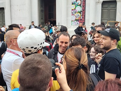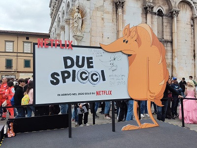 Michele Rech, in arte Zerocalcare, torna al Lucca Comics & Games 2025 per una novità imperdibile, nientedimeno che il titolo della sua nuova e terza serie animata, che sarà disponibile, come ogni sua opera televisiva, sulla piattaforma Netflix. Il fumettista aretino, classe 1983, dopo essersi trasferito a Rebibbia, quartiere della capitale italiana, ha sempre provato affinità con il mondo del disegno e della creatività. Infatti, Zerocalcare ha debuttato con il suo primo libro a fumetti nel 2011, “La profezia dell’armadillo”, vincendo il Premio Gran Guinigi per il Miglior fumetto breve al Lucca Comics & Games. Rech è tornato alla fiera nel 2015, vincendo il Premio Speciale Librerie Feltrinelli per “Dimentica il mio nome”, diventando così una figura di spicco al Lucca Comics & Games nel corso degli anni. Ed è nel 2021 che ha promosso la sua prima serie animata, dal titolo “Strappare lungo i bordi”, che ha ricevuto il plauso universale del pubblico e della critica, e che nel giro di pochissimo tempo ha accresciuto in maniera esponenziale il seguito del fumettista. Il 17 novembre dello stesso anno ha annunciato il titolo della sua nuova serie Netflix “Questo mondo non mi renderà cattivo”, uscita successivamente nel 2023. Zerocalcare è poi tornato al Lucca Comics & Games nel 2024, piazzandosi tra i finalisti dell’evento e debuttando al primo posto della classifica dei libri più venduti in Italia grazie a “Quando muori resta a me”. L’opera, un lavoro di narrazione disegnata, ha avuto un incredibile successo, uscendo in tutte le librerie italiane dopo anni di storie di reportage ed impegno civile dell’autore. Oggi, sabato 1^ novembre, Zerocalcare si è esposto alla gioia dei suoi fan di fronte alla Chiesa di San Michele. Per l’evento, era stata fissata una piattaforma solo per il fumettista, sulla quale spiccava l’immagine del suo iconico personaggio, l’armadillo, personificazione della sua coscienza e dei suoi freni inibitori. Alle ore 14.00, Zerocalcare ha salutato i fan ed ha sorpreso tutti quanti rivelando il titolo della sua prossima serie Netflix. “Due Spicci”, in arrivo nel 2026, sarà il nome del prossimo debutto d’animazione televisivo del celebre fumettista italiano. A seguito della rivelazione, Zerocalcare si è fermato a regalare selfies e foto con i suoi fan, uscendo dai riflettori poco dopo la sua apparizione al Lucca Comics & Games 2025.