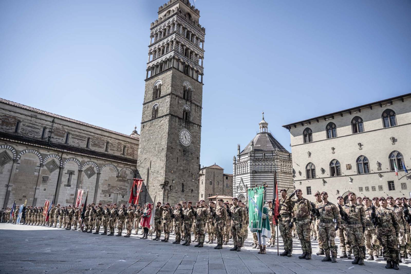 Nella giornata di venerdì 24 aprile, alla presenza delle massime autorità civili e militari, tra le quali il vicesindaco facente funzioni della città, Anna Maria Celesti, e il Comandante della Brigata Paracadutisti Folgore, Generale Dario Paduano, il 183° “Nembo” ha festeggiato la propria festa di Corpo in Piazza Duomo a Pistoia. Nel suo intervento il Comandante del 183° reggimento paracadutisti “Nembo”, Colonnello Alessandro Villa, ha ricordato l’importanza degli avvenimenti di quel 19 aprile 1945 nell’abitato di Case Grizzano sottolineando l’eroismo, il sacrificio e il valore di quegli uomini che hanno combattuto per la liberazione d’Italia. Il Colonnello Villa ha inoltre voluto ringraziare «Pistoia e la sua provincia per la collaborazione e la sinergia che lega il reggimento alle realtà del territorio. Proprio in virtù di questo legame ci sentiamo orgogliosamente i paracadutisti di Pistoia».