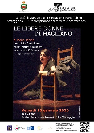 Nel mese di gennaio la Fondazione Mario Tobino vuole ricordare lo scrittore e psichiatra viareggino Mario Tobino in occasione del 116° anniversario della nascita con lo spettacolo "Le libere donne di Magliano", tratto dal libro scritto nel 1953, in scena venerdì 16 gennaio alle 21 al  Teatro Jenco di Viareggio e domenica 18 gennaio alle 17 all'Auditorium della Fondazione Banca del Monte di Lucca.