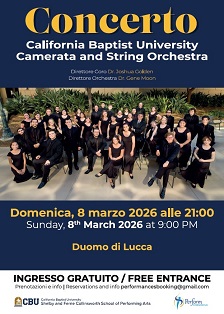 Il primo appuntamento per l’8 marzo, III Domenica di Quaresima, ma anche festa della donna, è con un eccellenza proveniente dalla California: il California Baptist University Choir con Direttore del Coro Dr. Joshua Gloden e Direttore d’ Orchestra: Dr. Gene Moon. Verrà eseguito un programma di musica sacra con riferimenti all’attuale tempo liturgico.