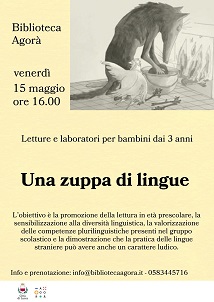 Il mese di maggio alla biblioteca Agorà si intrecciano sostenibilità, lettura e dialogo tra culture, con attività pensate per tutte le età. Si concluderà infatti il progetto "Dal silenzio alla parola", con appuntamenti dedicati alla parola che esce dai nostri confini personali e diventa linguaggio globale, e spazio di condivisione: "Il gruppo di lettura si racconta" parlerà dei libri letti di narrativa straniera dal gruppo negli ultimi anni, il corso online "Leggere in contesti multiculturali – Parole che costruiscono ponti", e il laboratorio per bambini "Una zuppa di lingue", per scoprire le lingue in modo ludico e inclusivo.