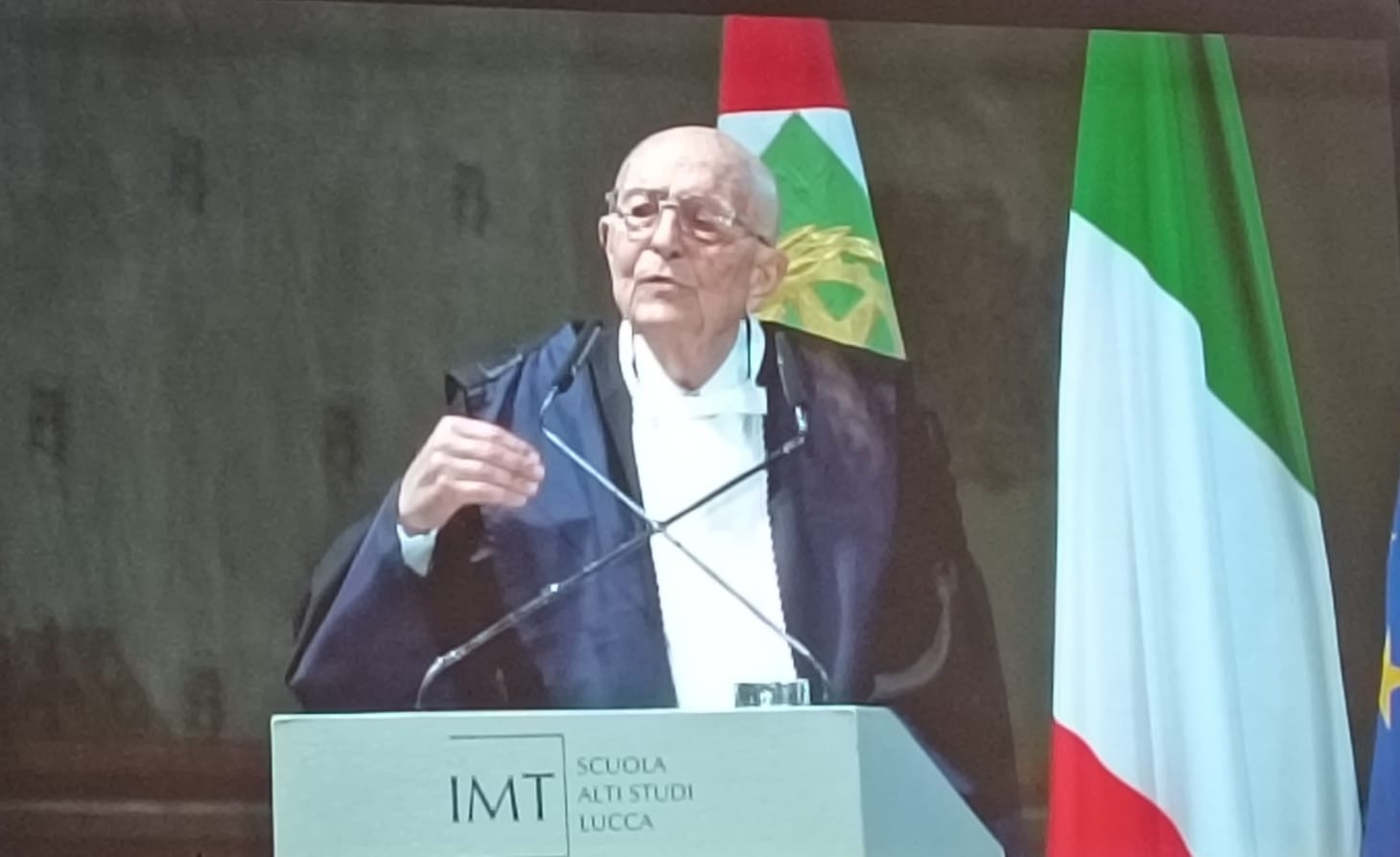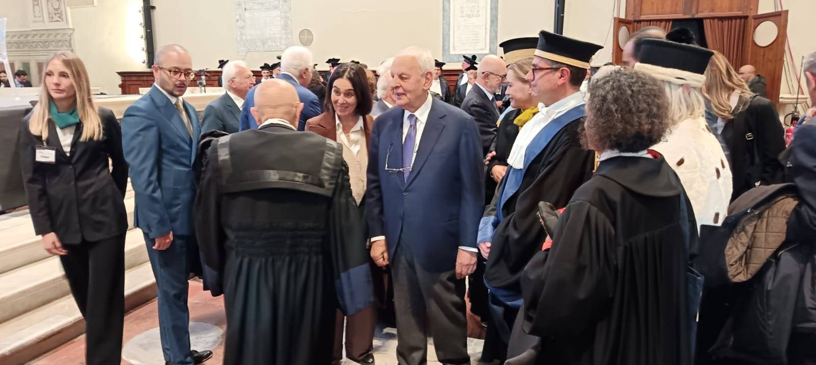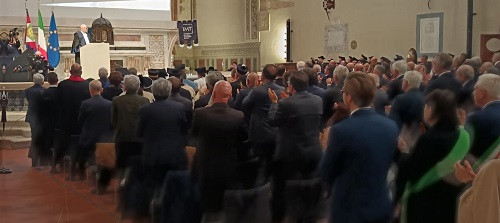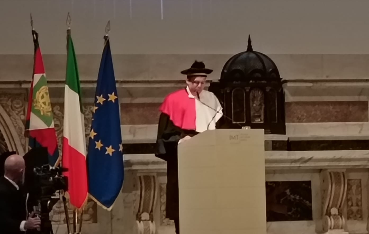 Dopo l’ingresso del corteo accademico, è stata la volta del capo dello Stato che ha preceduto l’esecuzione dell’inno nazionale. È stato poi proiettato il video istituzionale di presentazione della Scuola IMT. Successivamente hanno poi preso la parola Massimo Marsili, presidente della Fondazione Cassa di Risparmio di Lucca, Marcello Pierucci, presidente della Provincia di Lucca, Mario Pardini ed Eugenio Giani, rispettivamente sindaco di Lucca e presidente della Regione Toscana, cui è seguita la prolusione del rettore della Scuola IMT, Lorenzo Casini. Mario Pardini ha voluto sottolineare l’importanza storica di questa cerimonia, non solo per la Scuola IMT ma per tutta la città di Lucca che, per l’occasione, ha ospitato ed accolto, oltre al presidente della Repubblica Sergio Mattarella, moltissime autorità politiche, civili, militari e religiose. Il rettore Lorenzo Casini, dopo aver sottolineato l’importanza e la ricchezza della Scuola di alta formazione IMT che, da oltre vent’anni, grazie alla volontà di Marcello Pera, forma i giovani studenti all’interdisciplinarietà, con un pensiero tanto critico quanto libero. E dopo aver ringraziato tutte le autorità presenti, ha ufficialmente dichiarato aperto l’anno accademico. “Un giurista misurato che ha formato generazioni di giuristi e di studiosi – ha sottolineato Marta Cartabia nella sua approfondita laudatio - e che, con grande merito, si appresta a ricevere questo prestigioso riconoscimento. “Sono onorato di ricevere questo dottorato di ricerca – ha detto nel preludio alla sua lectio magistralis Cassese – titolo accademico onorifico le cui origini risalgono addirittura al XV secolo. Le lodi vanno spartite nel tempo in cui si vive con le sue felicità ed i suoi turbamenti. La storia è studiata nel suo svolgimento mentre io voglio rappresentarla nel suo risultato, nel lascito del passato al presente”. Un excursus di ottant’anni di Repubblica Italiana, dalla sua nascita ad oggi, che ha enumerato i cambiamenti e l’evoluzione di un intero popolo, facendo riferimenti statistici e analizzando numeri che dimostrano quanti risultati sono stati ottenuti con l’attuazione della Costituzione Italiana fin dalla nascita della Repubblica Democratica e durante tutto il corso della sua storia. Un come eravamo e come siamo, attraverso il progresso e le sue direttrici, attraverso le vie della storia, con i tornanti e l’inquietudine di un intero paese. L’intervento del professor Cassese si è chiuso con l’immancabile augurio, rivolto a tutti i docenti ed a tutti gli studenti e le studentesse presenti, per l’anno accademico che verrà ed è stato seguito da un lungo, lunghissimo applauso da parte di tutti i tantissimi presenti. È stato poi il momento della consegna della pergamena da parte del rettore, con cui è stato conferito a Cassese il sopra citato Dottorato di ricerca honoris causa in “Cultural Systems”. Il tanto atteso intervento del presidente Mattarella però, alla fine, non c’è stato ma è altrettanto vero che già questa mattina non era stato confermato e così questa importante cerimonia si è conclusa con un toccante e suggestivo momento musicale a cura di un quartetto d’archi del Conservatorio di Musica “Luigi Boccherini” che ha fatto risuonare nella splendida cornice della chiesa di San Francesco le note della famosa aria pucciniana “Nessun dorma”. E cosi, dopo i saluti alle istituzioni, il presidente si è congedato, salutato da tutti i presenti sia all’interno che fuori la chiesa. Il Capo dello Stato, con la sua sola presenza ha comunque reso omaggio a Lucca, città dove ricerca e cultura si intrecciano con la formazione, dove il passato ed il futuro dialogano tra di loro ed è proprio per questo che è stata scelta, per rappresentare la formazione universitaria a livello internazionale, in quello che è stato non solo un appuntamento istituzionale ma un vero e proprio riconoscimento.