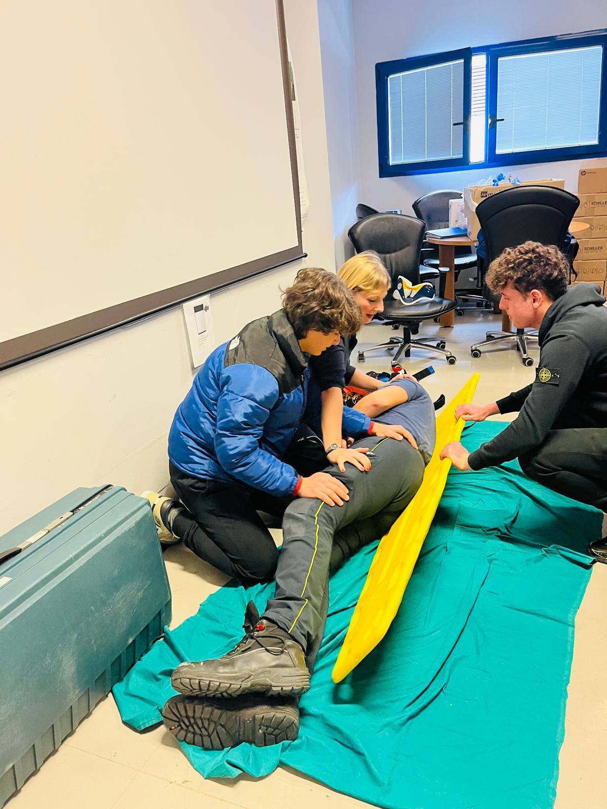 Dopo un primo momento di formazione teorica tenuto dal dottor Giacomo Spinelli, gli alunni si sono divisi in gruppi per una serie di attività pratiche, toccando con mano il mondo dell'emergenza: