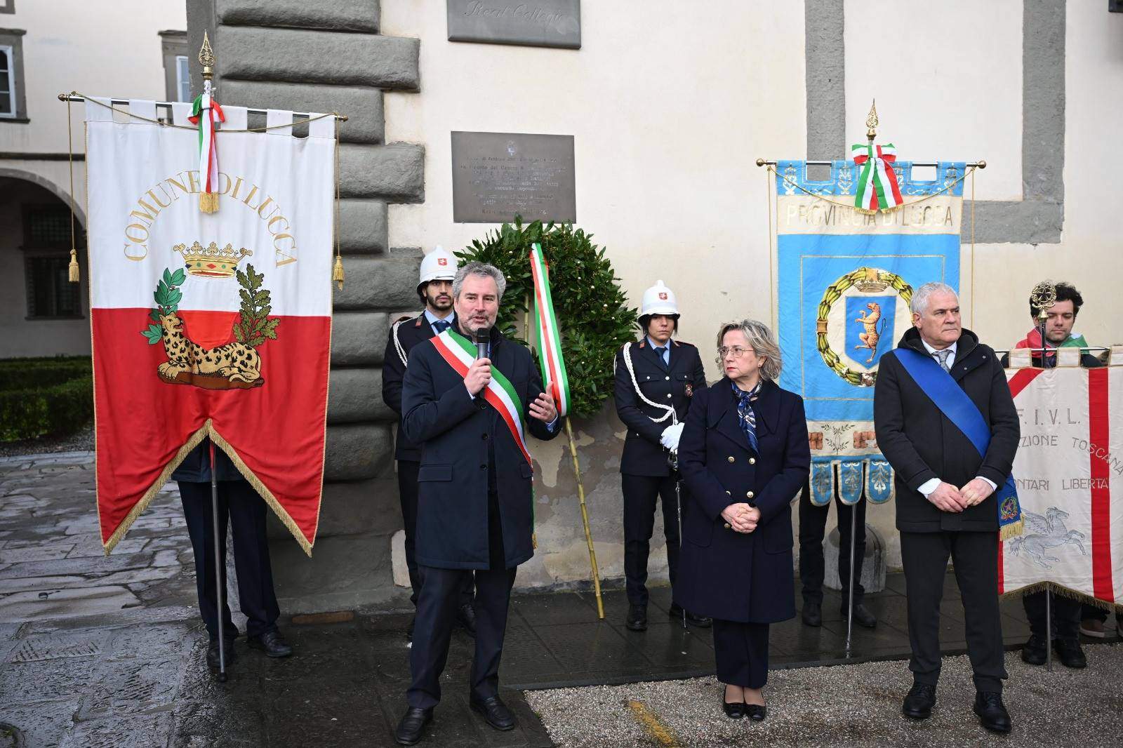 All'apposizione di una corona d'alloro alla targa che ricorda quello che fu un Centro di Raccolta degli esuli giuliano-dalmati dal 1947 al 1956, il Real Collegio appunto, erano presenti il sindaco Mario Pardini, il prefetto Cristina Favilli e il presidente della provincia Marcello Pierucci, oltre a una folta rappresentanza di autorità civili e militari, assessori, consiglieri comunali e cittadini. Fra loro hanno preso la parola, oltre ai rappresentanti istituzionali, anche Simonetta Simonetti di ATVL-Associazione Toscana Volontari della Libertà e Sandro Righini, commissario provinciale comitato 10 febbraio.