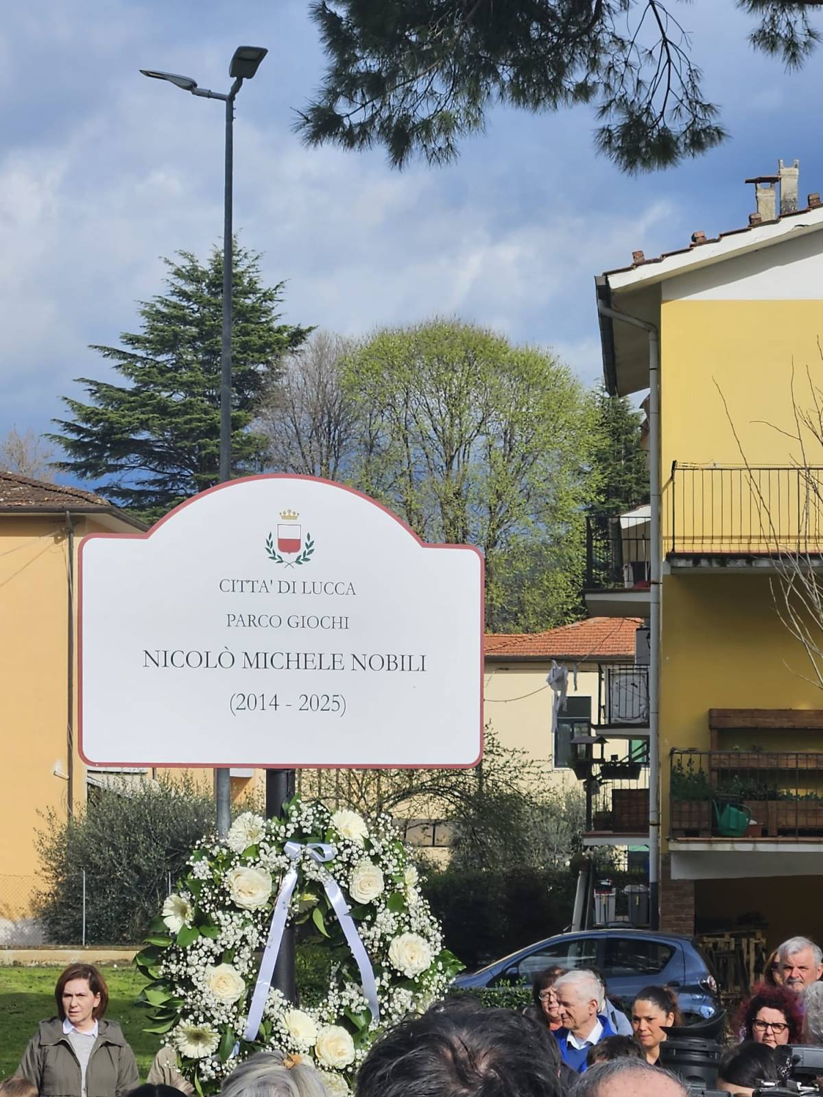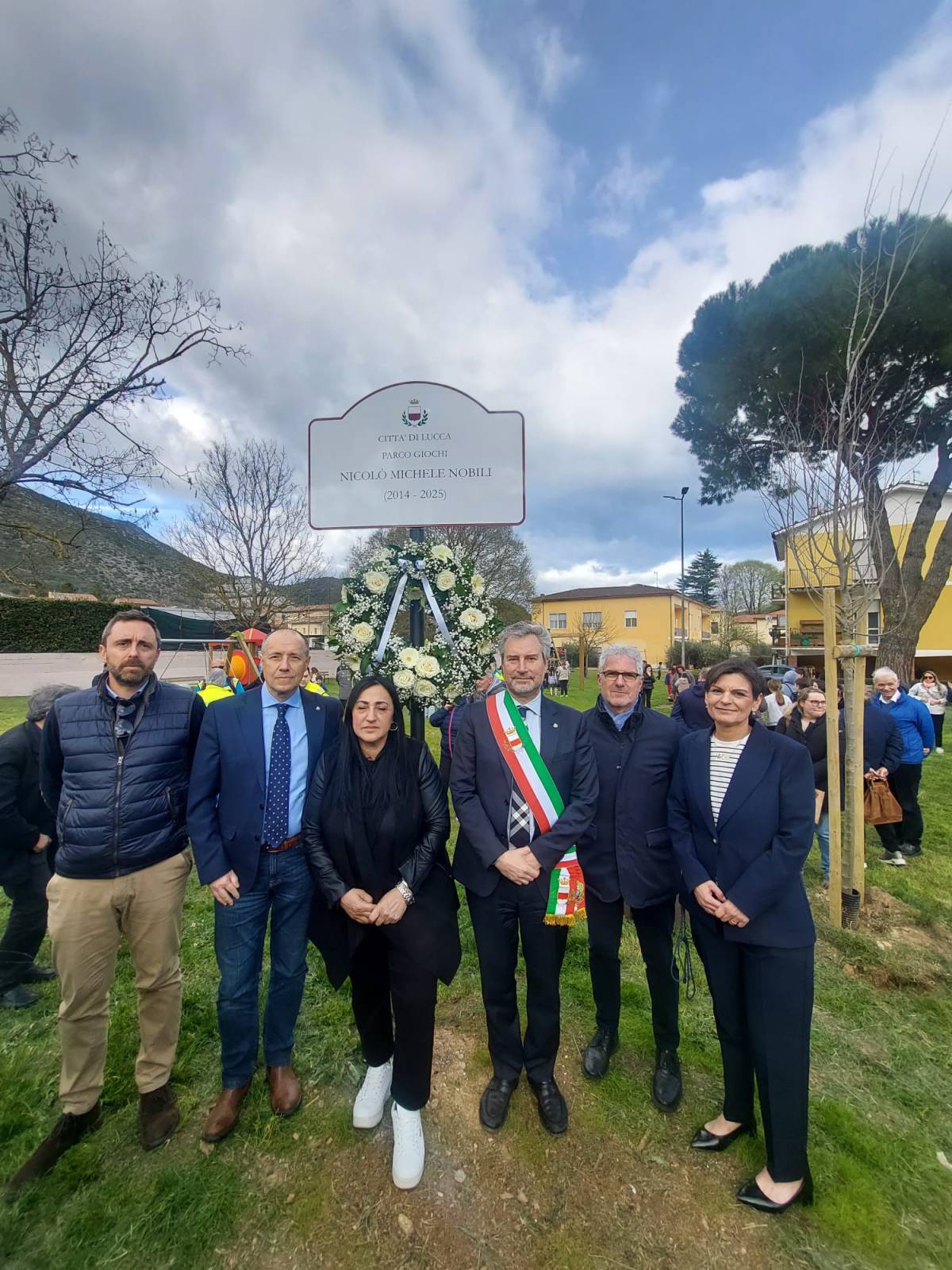 Questo pomeriggio (18 marzo), a Santa Maria del Giudice, è stato intitolato il parco giochi di via Ventiquattro maggio al piccolo Nicolò Michele Nobili (Lucca, 27 ottobre 2014 – Pisa, 6 giugno 2025), che si è spento all'età di soli 10 anni per una malattia che gli era stata diagnosticata all'età di 3 anni.