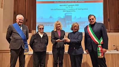 "Alfa carissimo, oggi mi sono alzata un po' e come vedi rispondo alla tua cara lettera. Ti ho scritto nella cartolina che è nata un amore di bimba e che sono felice. Mi dispiace tanto che sei lontano e non puoi vedere tutti i momenti belli della bimba, ma speriamo che finisca presto così potrai ritornare e allora la guarderemo insieme". Con questa toccante lettera, Laura Bresciani ha ricordato le parole che la madre scrisse a Alfa Bresciani negli anni della deportazione a Wolfsberg, in Austria, nel maggio del 1944. Una missiva che racconta la nascita della figlia Elena e la dolorosa distanza imposta dalla guerra, letta con emozione davanti agli studenti e alle autorità presenti alla cerimonia promossa dalla Prefettura di Lucca, in collaborazione con il Comune di Pietrasanta, in occasione della Giornata della Memoria. All'iniziativa hanno preso parte il Prefetto Cristina Favilli, il sindaco Alberto Stefano Giovannetti, il presidente della provincia di Lucca Marcello Pierucci e i rappresentanti delle Forze dell'ordine, delle Forze armate e delle autorità civili e militari del territorio.