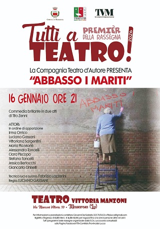 Venerdì 16 gennaio, alle ore 21, il Teatro Vittoria Manzoni di Massarosa ospiterà una serata speciale: un’anteprima–première che apre il percorso della terza edizione della rassegna “Tutti a Teatro!”, organizzata dal Comitato Provinciale Lucca della F.I.T.A. APS in collaborazione con il Comune di Massarosa e la Fondazione Cassa di Risparmio di Lucca.
