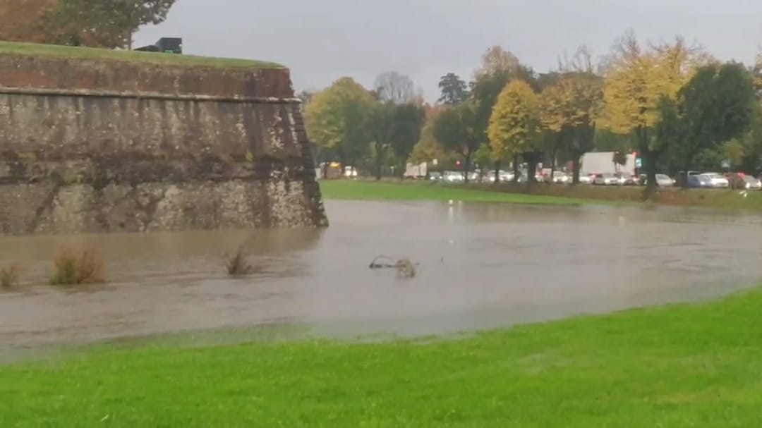 Piove a dirotto e gli spalti sottostanti le Mura si allagano completamente, creando una sorta di “effetto lago”. Succede a Lucca, dove nel pomeriggio di mercoledì un violento nubifragio si è abbattuto sulla città, creando notevoli disagi alla viabilità. E i prati delle Mura, nel tratto di fronte alla rotatoria che conduce al viale Europa, sono finiti sott’acqua.