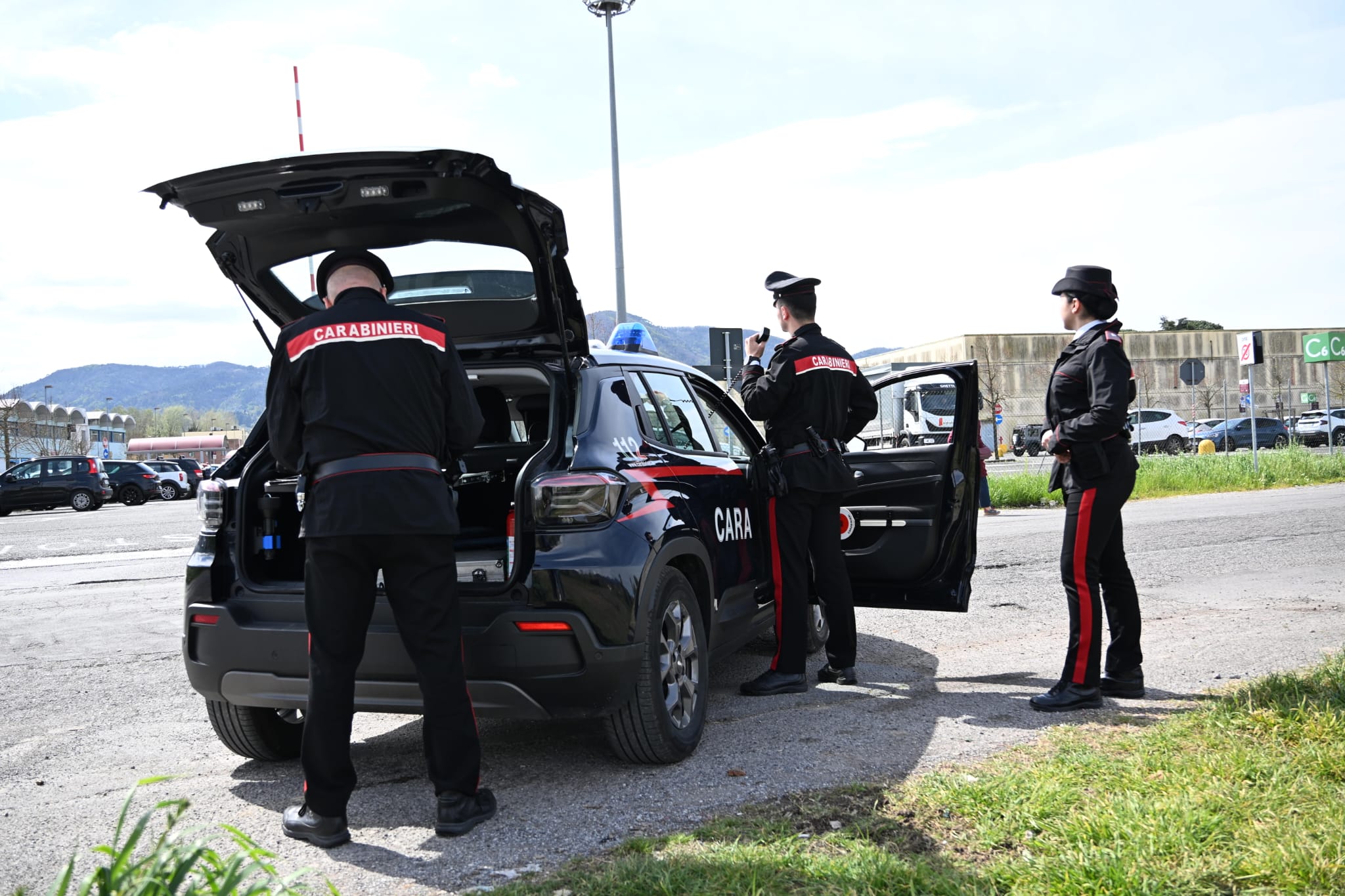 Alle ore 12:30, un equipaggio in borghese e con macchina civetta della sezione operativa della locale compagnia carabinieri, intercettava nella via di Tiglio di Lucca un’autovettura con due soggetti di origine sudamericana, che si aggirava con fare sospetto nei pressi del vicino supermercato “COOP”. Insospettiti, i militari dell’Arma pedinavano il veicolo, che si fermava nel parcheggio del predetto esercizio. Dopo essere scesi dalla macchina, i due uomini s’incamminavano separati verso l’ingresso del supermercato, tenendo un atteggiamento guardingo.