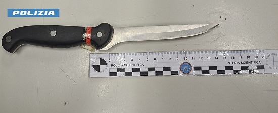Inoltre, all'interno della medesima borsa, riconducibile alla donna ma detenuta al momento del controllo dall'uomo, veniva trovato un coltello da cucina con lama di circa 14 cm. Il possesso dell'arma bianca evidenziava un profilo di particolare pericolosità, denotando la possibile predisposizione a tutelare l'azione delittuosa mediante l'uso di mezzi potenzialmente offensivi.