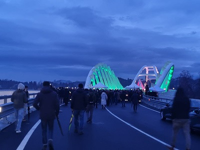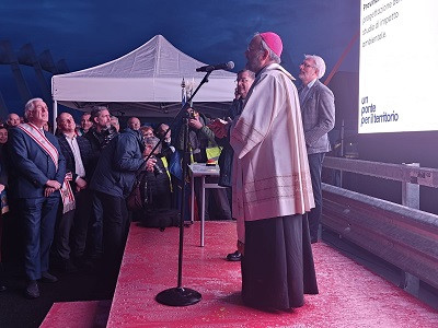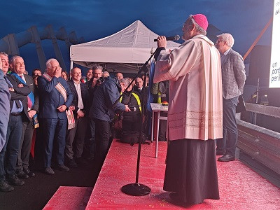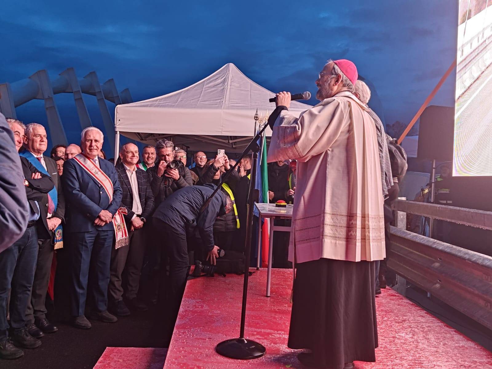 “Questo ponte non sia solo un’infrastruttura utile, ma anche simbolo di unione, incontro e pace: in questi giorni di Natale, in questi tempi difficili, evochi la necessità di incontrarci e ci esorti a recuperare la vocazione umana alla mediazione, senza muri, divisioni e barriere”: con queste parole monsignor Paolo Giulietti, vescovo di Lucca, ha dato la sua benedizione al nuovo ponte sul Serchio, monumentale opera da decenni attesa dagli abitanti di Lucca e non solo e oggi finalmente inaugurata, come un regalo di Natale alla cittadinanza tutta. In attesa dell’effettiva apertura della strada al transito, che avverrà nella mattina della vigilia di Natale, quello di oggi è stato un pomeriggio di festa, accompagnato dalla musica degli studenti del conservatorio Boccherini che hanno intonato “Nessun Dorma” dalla Turandot di Giacomo Puccini e dall’accensione delle luci a led del ponte, illuminate con i colori della bandiera italiana.