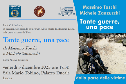 L'incontro - promosso dalla Provincia di Lucca con la Scuola per la Pace della Provincia e la Fondazione Banca del Monte di Lucca - è incentrato sulla presentazione del libro «Tante guerre, una pace», scritto da Massimo Toschi assieme al giornalista Michele Zanzucchi e pubblicato da Città Nuova Edizioni.