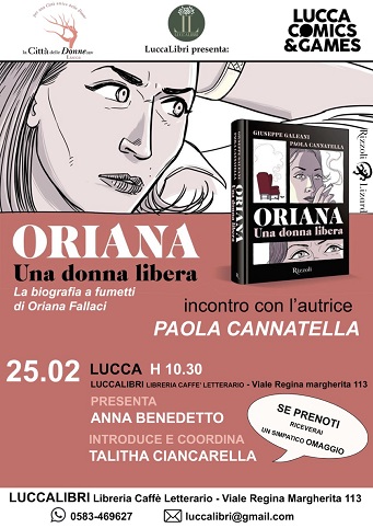 Domenica 25 febbraio ore 10,30 a LuccaLibri Libreria Caffè letterario verrà presentata la graphic novel “Oriana. Una donna libera” ed Rizzoli Lizard. Tramite il linguaggio del fumetto si racconta non solo una scrittrice di genio, ma anche le trasformazioni di settant’anni di storia e politica internazionale attraverso il percorso umano, professionale, artistico e politico di una donna libera, con i suoi dubbi e le sue contraddizioni. A moderare l’incontro con Paola Cannatella, coautrice del libro, sarà l’esperienza di Anna Benedetto ed è organizzata in collaborazione con l’associazione La città delle donne e di Lucca Comics&Games.