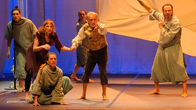 Il sogno viaggio reso ancora più coinvolgente anche dalle semplici coreografie, create con un fluttuare di lenzuola bianchi che ora erano le spumeggianti onde del mare, per poi diventare le vele spiegate o le nubi di un temporale, con effetti sonori, luci e le ombre che rendevano il tutto più onirico. Una scenografia / coreografia grazie agli otto performer che attraverso danze e musica, mimi, canzoni hanno contribuito a portare lo spettatore in una esperienza magica che tutto travolge, e forse in un mondo irreale e fantastico che tutti noi, anche se non lo vogliamo vedere, abbiamo dentro.