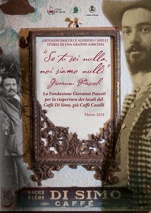 Proprio per manifestare il plauso per quanto operato dal Comune di Lucca, e per ricordare l’amicizia che legò i due personaggi, la Fondazione Pascoli ha voluto celebrare la riapertura del Caffè realizzando un manifesto che raffigura Pascoli e Caselli, con a corredo i primi versi dell’ode dedicata dal poeta all’amico lucchese. Il manifesto, su grafica di Caterina Salvi, è stato realizzato in collaborazione con il prof. Umberto Sereni che quest’anno supporterà la Fondazione nel promuovere eventi ed attività in ricordo di Giacomo Puccini ed Alfredo Caselli.