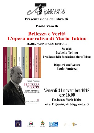 Venerdì 21 novembre alle 16, presso la Fondazione Mario Tobino all'ex manicomio di Maggiano, è in programma  la presentazione del libro   "Bellezza e verità. L'opera narrativa di Mario Tobino"  scritto da Paolo Vanelli.
