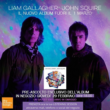Sono cinque i negozi di dischi in tutta Italia scelti dalla Warner Music per far ascoltare in anteprima l'album di Liam Gallagher degli Oasis e John Squire degli Stone Rosese lo Sky Stone and Songs è uno di questi (gli altri sono a Milano, Bologna, Roma e Salerno).