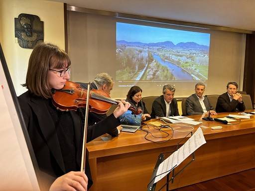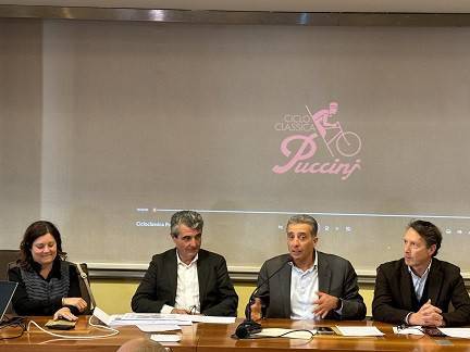 Sulle note del Valzer di Musetta, eseguito dalla violinista Giulia Bartalini è stata presentata questa mattina nella Sala dell’oro della sede di Corte campana a Lucca della Camera di commercio della Toscana Nord-Ovest è stata annunciato l’appuntamento con la Cicloclassica Puccini, in programma domenica 7 aprile. Un appuntamento non solo per gli appassionati di ciclismo, ma per tutti coloro che amano la natura e vogliono scoprire il territorio lucchese e versiliese attraverso i luoghi cari al Maestro Giacomo Puccini e trascorrere un fine settimana all’aria aperta in sella alla propria bici insieme a professionisti e sportivi del territorio. L’evento, giunto alla sua terza edizione, prevede due percorsi ad anello sulla ciclopedonale del Maestro Giacomo Puccini, con partenza da Lucca (Piazza del Giglio) dalle ore 9 alle ore 10: un percorso leggero di 14 km con arrivo alla fattoria urbana degli Albogatti e ritorno e un altro di 52 km con arrivo sul Lago di Massaciuccoli e rientro in bici al luogo di partenza.