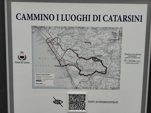 Ce lo spiega proprio Elena Martinelli, nipote dell’artista viareggino e presidente della Fondazione Catarsini 1899, presente con noi alla visita: “Castagnori non viene descritta molto bene nel libro Giorni Neri ma è comunque ambientato in questi luoghi e si basa su fatti realmente accaduti, poi romanzati. È stato rieditato dalla casa editrice La Nave di Teseo nel 2021 con prefazione di Giordano Bruno Guerri ed è uno spaccato molto interessante della famosa quanto triste estate del 1944”. “Catarsini – aggiunge Martinelli - va a delineare dei personaggi che sono emblematici nella sua concezione dell’arte, per il fatto di essere sempre dalla parte dei più umili, dalla parte di chi subisce senza avere colpe. Il suo è un messaggio universale come si può evincere dai connotati della figura femminile di nome Delta, una donna che non deve dimostrare niente a nessuno, autorevole, giovane e colta. È nelle fila partigiane, senza alcuna carica, ma è ascoltata da tutti”. L’atmosfera magica che si respira in questa area della provincia lucchese, la storia di questo territorio e le bellezze del paesaggio ci raccontano l’ambiente naturale e umano in cui Catarsini ha vissuto lungo tutto il Novecento. Di questo secolo l’artista ha raccontato i drammi, le speranze e i cambiamenti tumultuosi, attraverso un’arte che mutava pur rimanendo fedele a sé stessa, cioè sempre vicina all’anima dell’uomo e della sua terra. “Per Catarsini – conclude – i luoghi dell’amata Valfreddana, e con essa Castagnori, erano i posti del cuore ed almeno due tre volte all’anno veniva in visita, anche per vedere i suoi affreschi assieme a tutta la famiglia, come in una sorta di pellegrinaggio”. La prima tappa del cammino è Lucca, a Palazzo Orsetti dove, nella Sala di Rappresentanza a piano terra, sono esposte cinque opere emblematiche della produzione artistica di Catarsini: cave di marmo, marine, riflessismo e simbolismo meccanico. Il Cammino “I luoghi di Catarsini” che mette insieme arte, storia, natura e cultura gastronomica gode del patrocinio del ministero della cultura, della Regione Toscana e della Provincia di Lucca. Per maggiori informazioni è possibile visitare il sito www.fondazionecatarsini.com