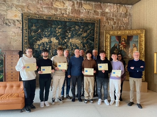 "Finanza e Borsa nella scuola": ecco i nomi degli studenti dell'ITIS Enrico Fermi di Lucca premiati dalla Fondazione Banca del Monte di Lucca. Giovedì 25 gennaio 2024, il presidente Andrea Palestini ha consegnato i personal computer in palio per i vincitori del concorso ideato per diffondere educazione finanziaria nelle scuole. I pc sono andati a: Fabio Tognarelli, Gabriele Fiorani e Jacopo Lunardi della 5 A Informatici (primi classificati) e ad Angelo Boschi, Francesco Ferrari e Alessio Bernardi della 5 Elettronici (secondi classificati) – tutti nelle foto allegate -.