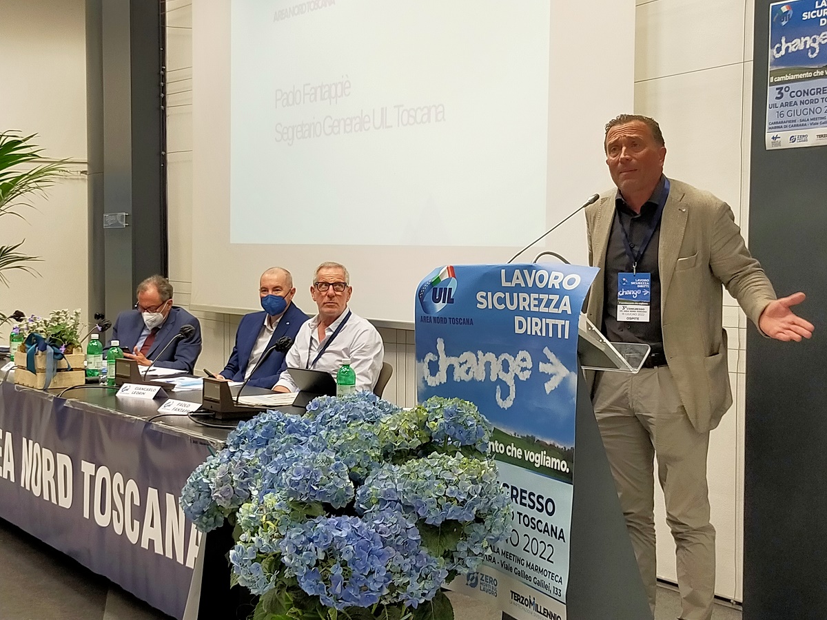 Il terzo congresso della Uil area nord Toscana ha confermato all'unanimità con un grande applauso di tutti i delegati presenti in sala il segretario Franco Borghini. Un'assemblea molto partecipata, a cui hanno preso parte i rappresentanti di tutte le categorie che formano la grande famiglia del sindacato sulle province di Lucca e Massa Carrara alla presenza del segretario confederale nazionale Uil, Domenico Proietti, e del nuovo segretario generale Uil Toscana, Paolo Fantappiè.