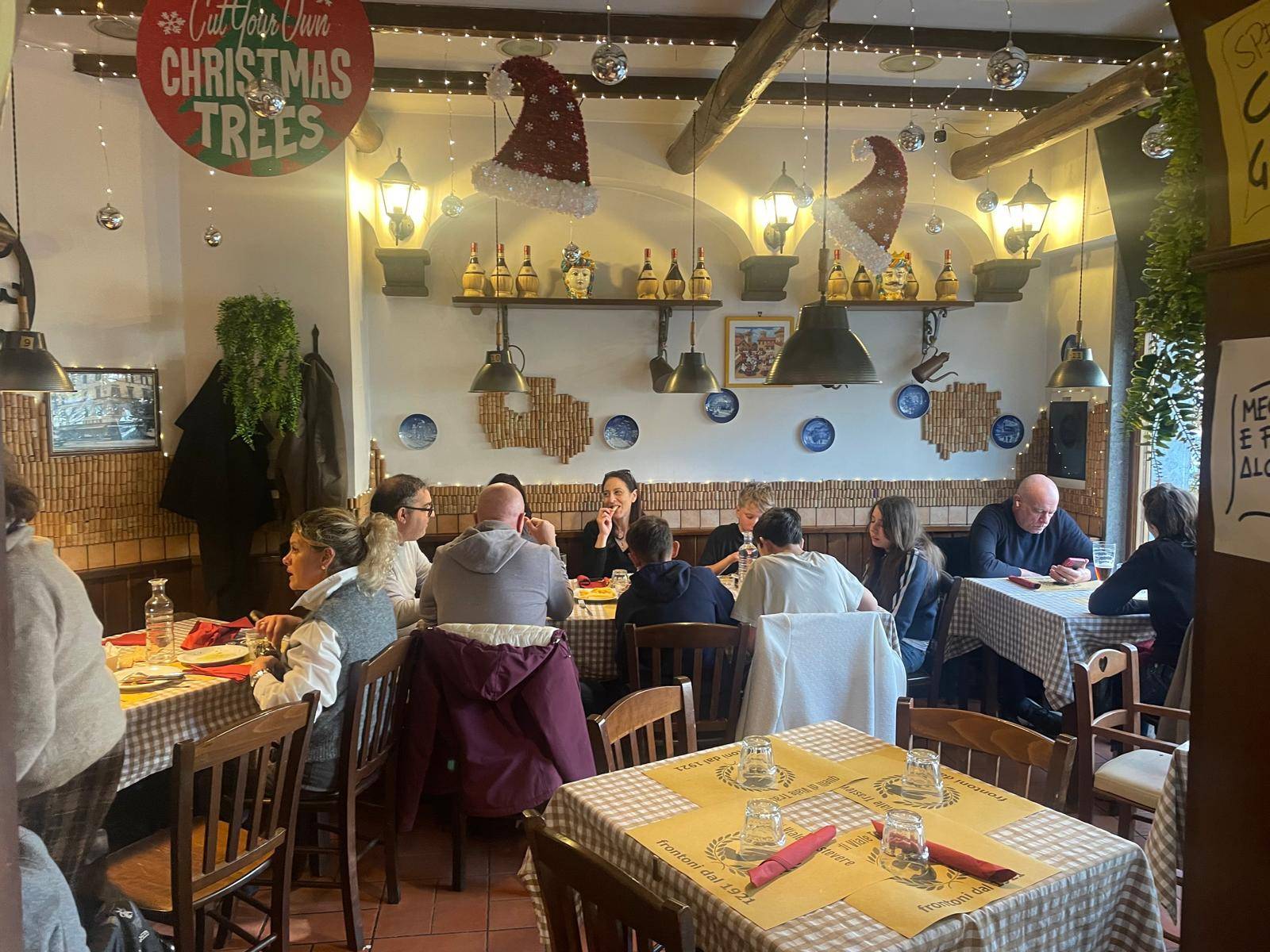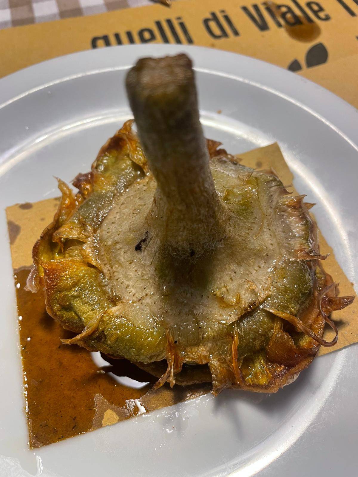 La piazza bianca farcita c'è sempre su richiesta, ma non c'è più la coda di un tempo. In compenso il ristorante è pieno e si mangia molto, ma molto romano e molto, ma molto bene. Un pezzo di pizza bianca farcita con salsiccia spalmata e cicoria è favolosa. Così come la polenta che vogliamo con il sugo di semplice pomodoro. La panzanella sottile sottile e con sopra una farcitura di mozzarella e pomodori a cubetti è buonissima e anche la tagliata con patate arrosto nonostante la carne sia notoriamente migliore dalle nostre parti, è tenera come il burro e godibile al massimo. Carciofi alla giudea e alla romana meritano non un assaggio, ma un doppio assaggio tanto sono ottimi. Strepitosi anche i primi piatti, dalla carbonara a alla cacio e pepe. Il locale è di quelli tipici della cucina romana, senza sfarzo, semplici, ma piacevoli senza troppe seghe come si direbbe noi. Essenziali, pratici, puliti. Dietro di noi, appesi alla parete, due quadretti con altrettante immagini della vecchia sede di Frontoni. La riconosciamo subito, ci prende un groppo alla gola e il tempo sembra riavvolgere il nastro della nostra giovinezza.