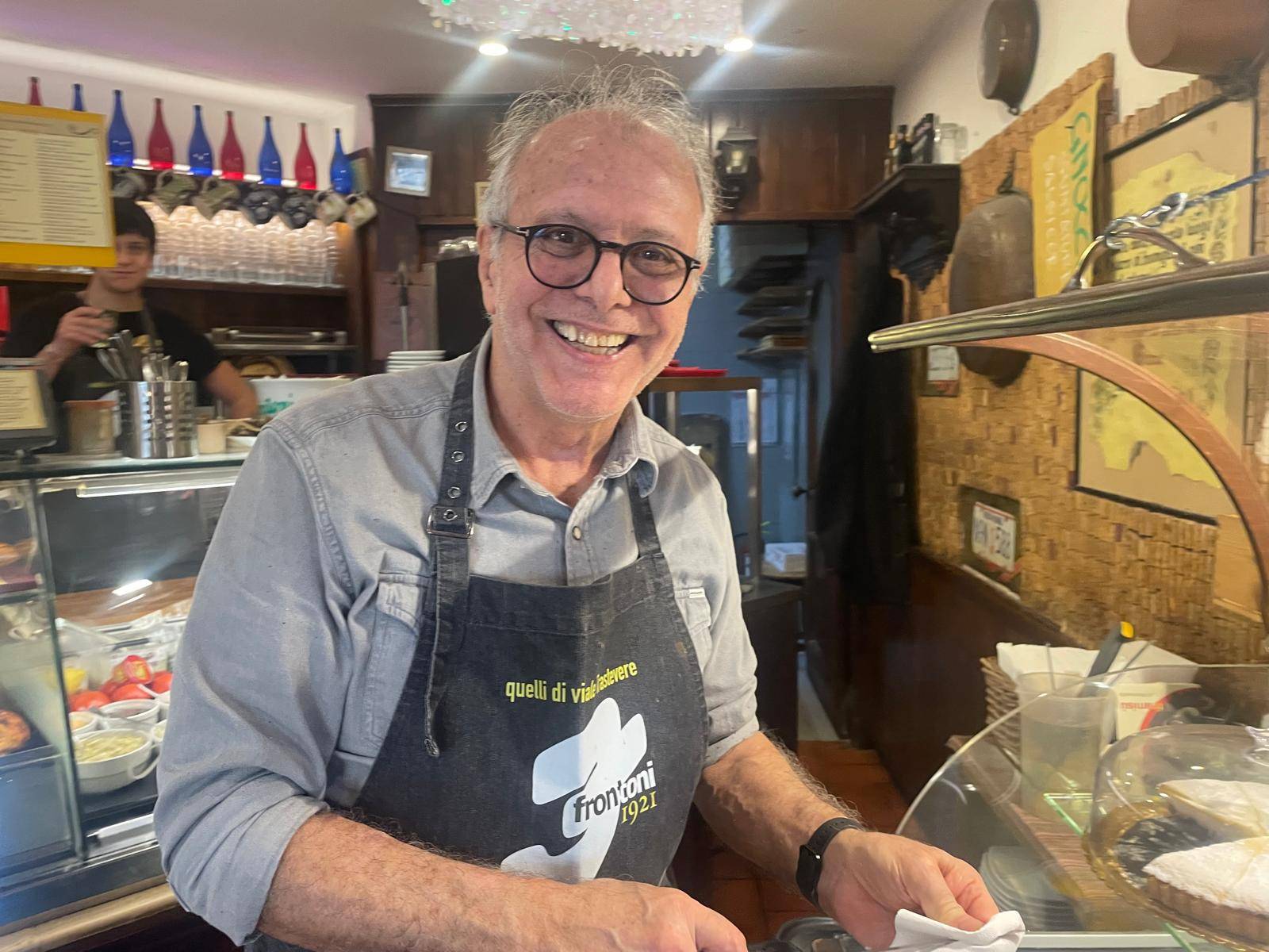 Frontoni dal 1921 è un pezzo di storia gastronomica di una città che, di storia, a parte i monumenti millenari, non conserva granché. Il sottotitolo che accompagna il biglietto da visita è un richiamo al passato: quelli di Viale Trastevere. Ci torneremo senza ombra di dubbio ogniqualvolta capiteremo nella capitale. Anche per sentire quell'accento romano per niente sguaiato, ma tanto gradevole che ci illude che questa città sia ancora, in parte, quella che ricordavamo. E invece, purtroppo, non è vero.