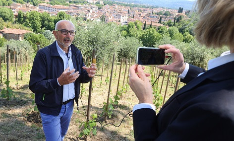 Composta fino al 2024 da pochi filari, la prima vigna urbana moderna di Firenze ha rinnovato lo scorso anno il suo parco viti mettendo a dimora 700 nuove piante. Il terreno, esposto a nord-est, è gestito dall’azienda agricola donne Fittipaldi di Bolgheri, presieduta da Maria Fittipaldi Menarini che, con le quattro figlie Carlotta, Giulia, Serena e Valentina, si è lanciata con convinzione ed entusiasmo in questo progetto. “Questa vigna rappresenta anche la mia infanzia – ricorda Maria – quando i primi di settembre, di ritorno dalla villeggiatura, amavo cogliere gli acini e anche alcuni grappoli per la tavola”. La passione e l’esperienza acquisita in vent’anni di creazione e gestione della loro azienda agricola a Bolgheri l’hanno convinta a far rivivere la vecchia vigna di casa. “In qualche modo – prosegue Maria – volevo dare un segno e un senso di continuità a questa casa, particolarmente amata da mio padre Mario. È passato giusto un anno da quando mettemmo a dimora le barbatelle ed oggi è davvero grande l’emozione per me e le mie figlie di vedere ogni barbatella già trasformata in vite con le prime foglie e soprattutto le prime infiorescenze. Questa vite ci racconta la vita che continua.”