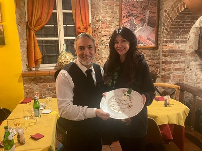 Il periodo estivo è passato, ma all'Oste di Lucca si continua a ricevere la visita di personaggi famosi anche ora che manca poco meno di un mese a Natale. Bella, tra l'altro, la scenografia natalizia sia nel ristorante di via Fillungo sia in quella di via Cenami. Proprio ieri sera al locale di Corte Compagni dove sono impegnati sia Matteo sia Chiara DEl Magro con il grandissimo Vincenzo Botta, ha fatto tappa la famiglia di Luisa Corna, la popolare showgirl e cantante. Con lei il marito Stefano Giovino e il figlio oltre ad un amico di Lucca che ha accompagnato il nucleo familiare. Una persona simpatica e alla mano - ha commentato Matteo Del Magro - per noi un onore averla al tavolo e poterle far assaggiare le nostre prelibatezze. Grande il solito Vincenzo che ha realizzato una delle sue opere d'arte al momento del déssert.