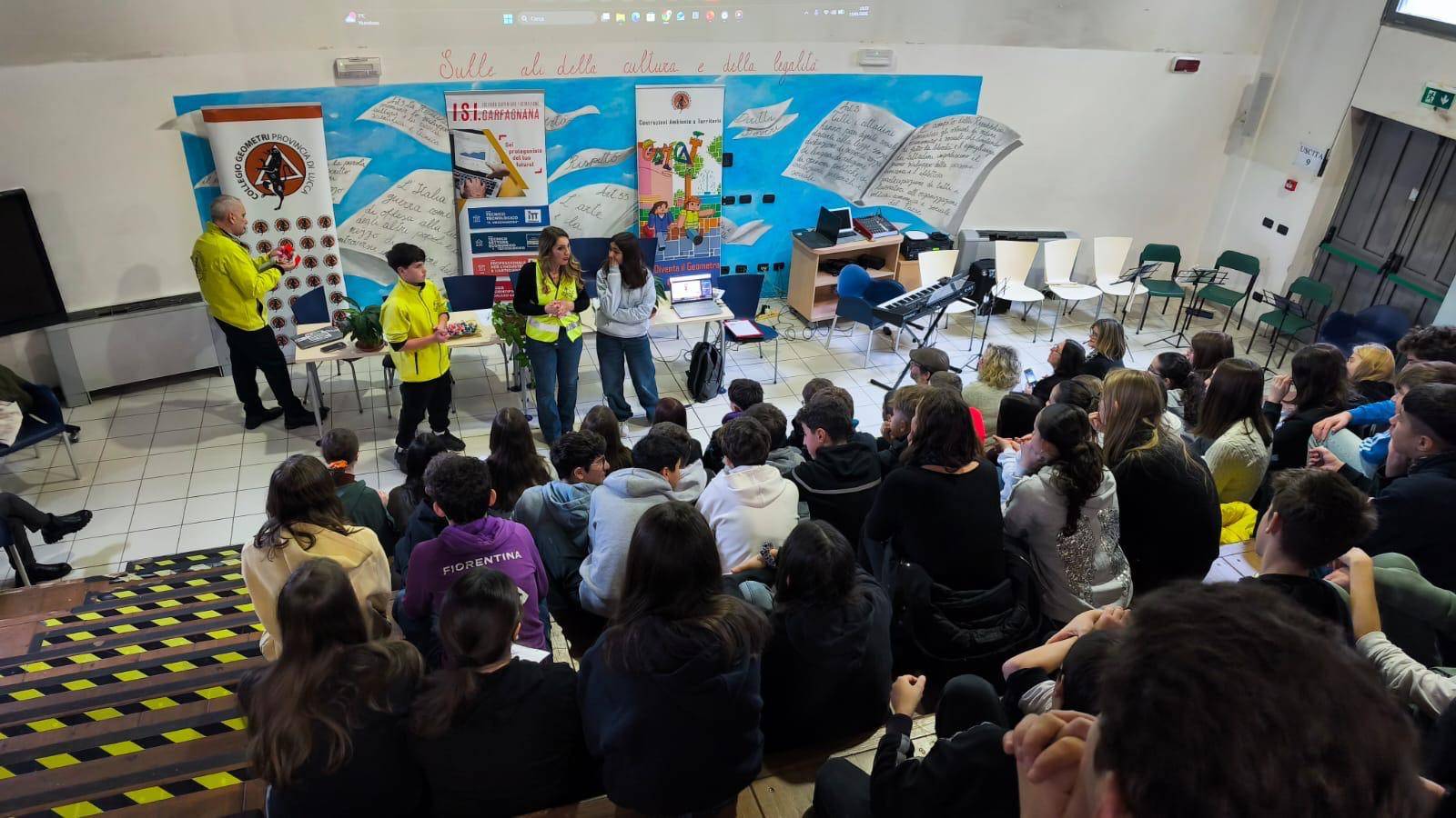 All'incontro sono intervenuti la Silvia Granucci, delegata dal Provveditore agli Studi di Lucca–Massa Carrara, le dirigenti scolastiche Mila Berchiolli per le scuole CAT-Geometri di Castelnuovo e la dirigente dell' I.C. di Gallicano Rosa Cinque, Matteo Parisi in rappresentanza del Consiglio Nazionale Geometri e Diego Ragghianti, presidente del Collegio dei Geometri della provincia di Lucca, oltre alla Commissione Scuola e Orientamento del Collegio dei Geometri di Lucca, con il vicesindaco e assessore ai Lavori Pubblici del Comune di Gallicano Dino Ponziani in rappresentanza dell'amministrazione
