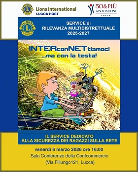 INTERconNETtiamoci… ma con la testa è un Service di Rilevanza Nazionale di Lions International dedicato alla sicurezza informatica e alla consapevolezza digitale rivolto a studenti delle Scuole Primarie e Secondarie di I° grado. Nato proprio nel Distretto Lions 108 La-Toscana, il progetto sta vivendo una stagione di straordinario successo anche nella nostra città: quest’anno, infatti, moltissimi istituti lucchesi hanno aderito al progetto, permettendo ai Lions di coinvolgere centinaia di ragazzi del territorio.