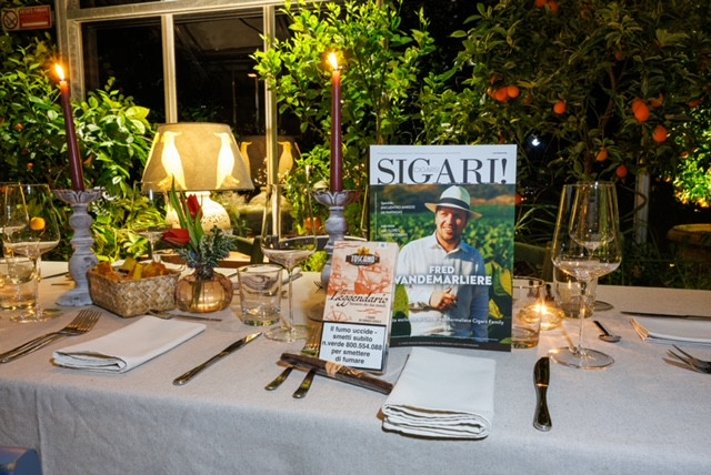 Una serata magnifica, in una location straordinariamente affascinante e accattivante, inedita, soprattutto. Ideata da quel genio artistico che risponde al nome di Luca Piattelli, titolare dell'atelier pour dames e non solo più prestigioso della regione localizzato a Chiesina Uzzanese. Si chiama Citrus Horti ed è situato in via di Campolasso a Pescia il regno dei fiori e delle piante. Prevista una degustazione guidata a base di champagne all'interno di una sera ad hoc. Ospiti gli amici di sempre del Club Gusto Toscano, l'inno al sigaro più famoso al mondo che viene gustato in tutta la sua fragranza a fine serata. Questa volta si tratta del Toscano Leggendario in abbinamento con il Ronchi Pichi, 'il Vino del Vate. Fotografo d'eccezione Ciprian Gheorghita ormai habitué di questi eventi. Durante la cena le pietanze sono state accompagnate dallo champagne Tassin Excellence.