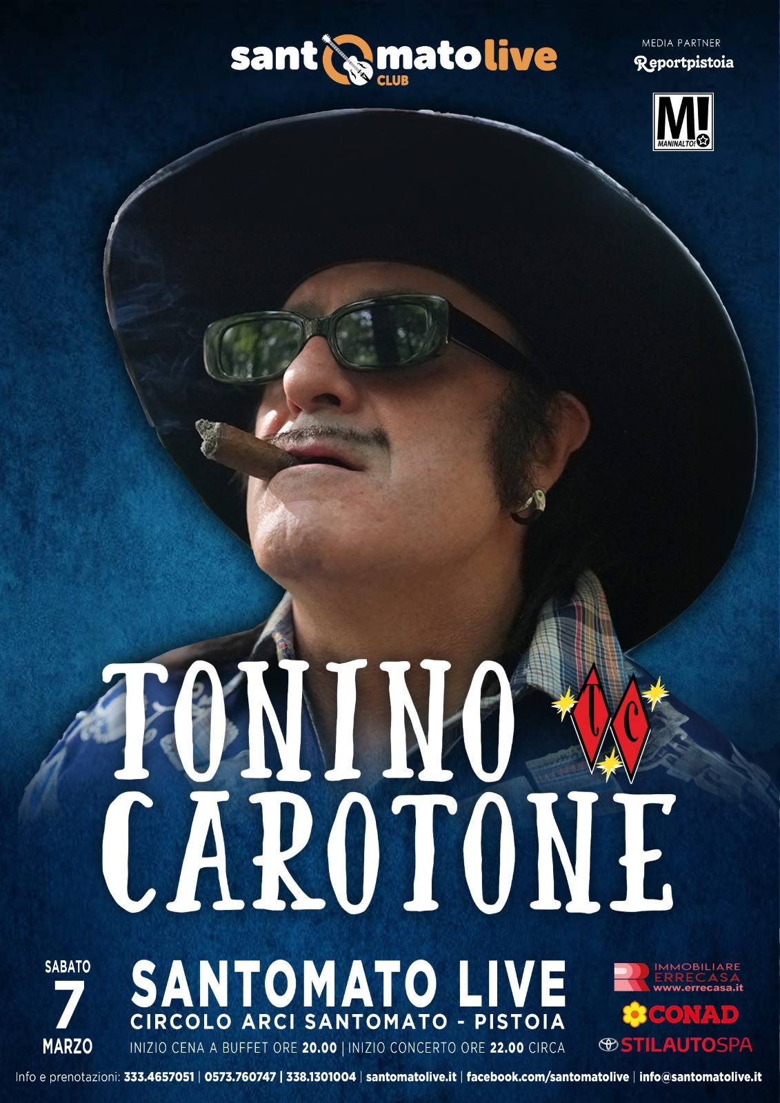 Altro grande concerto da non perdere è in programma sabato 7 marzo con Tonino Carotone, altra data esclusiva per la Toscana. Carotone presenterà lo spettacolo “Né angeli né Diavoli Tour”. Il cantautore spagnolo è molto noto a livello internazionale ed è particolarmente legato all’Italia, dove si esibisce regolarmente ed è spesso ospite di trasmissioni televisive e radiofoniche.