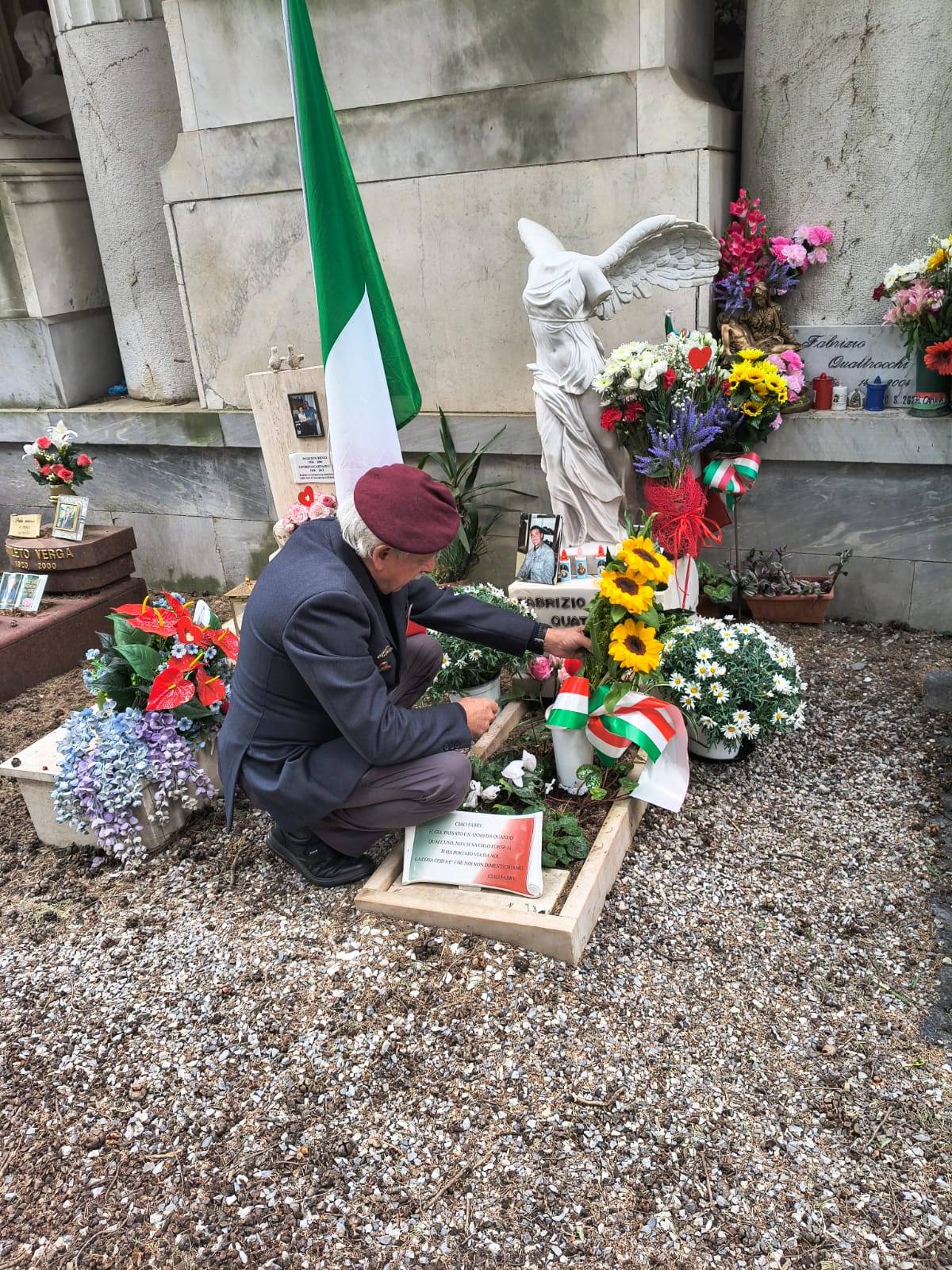 C'era anche lui, uno di noi, uno di quelli cresciuti con la Gazzetta e che non sopporta giornalisti e intellettuali invertebrati. Giuliano Nelli, paracadutista, questa mattina era al cimitero di Staglieno per celebrare il 22° anniversario della morte di Fabrizio Quattrocchi, l'italiano massacrato dai terroristi islamici ai quali non ha venduto la proptria dignità tenendo ben alto il viso e dicendo al suo carnefice: "Adesso vi faccio vedere come muore un italiano". Con lui la sorella di Fabrizio, Graziella Quattrocchi, che incontrammo un mese circa dopo la scomparsa del congiunto. Una donna di straordinaria umanità, con cui avremmo voluto scrivere la biografia del fratello, ma che, all'epoca, non se la sentì essendo troppo fresca la tragedia. 22 anni dalla morte di uno degli eroi più fulgidi del nostro Paese, indimenticato e indimenticabile per noi, dimenticato, invece, da quei vermi verniciati di rosso per i quali l'eroismo è solo quello dik aggredire poliziotti e carabinieri nelle strade. Per noi Fabrizio Quatrocchi resterà sempre un esempio.