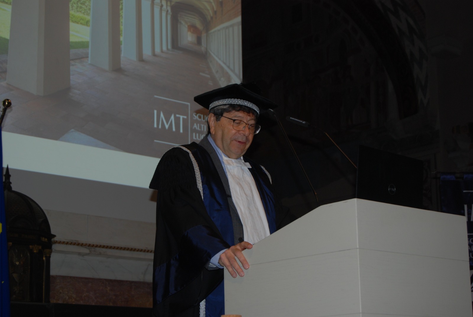 Durante il suo discorso Rocco De Nicola, presente nel suo terzo ed ultimo anno di mandato come rettore, ha invece riassunto i traguardi accademici e strutturali raggiunti dalla Scuola IMT nell'ultimo anno, ringraziando il supporto delle istituzioni che hanno reso possibili questi raggiungimenti.