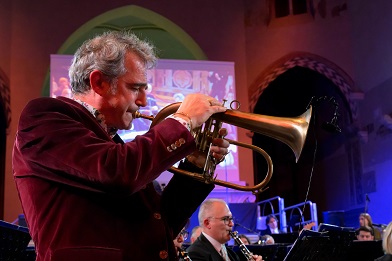 Cuore del concerto, e ci sarebbe piaciuto che fosse stato ancor meglio sottolineato, l’enunciato del Summer nights blues di Luciano Berio. Si tratta di un capolavoro di strumentazione con cui il maestro Lazzeri ha ribadito il suo ingresso nel mondo della modernità, con la valorizzazione di un breve spartito con cui uno dei maestri della Nuova Musica aveva ribadito il suo attaccamento al mondo delle tradizioni popolari. Abbiamo ascoltato questo pezzo sin dalla sua presentazione, tre anni fa, sulla piazza di Radicondoli, lo abbiamo apprezzato nel concerto nella sala Mehta al Maggio Musicale Fiorentino e lo abbiamo trovato ancor più introspettivo nella versione di Fresu. Qui il maestro sardo, forte di un portato atavicamente antropologico, ha saputo dare al suo strumento una tinta mitologica che è sembrata allacciare il mondo del jazz a una dimensione interstellare che sembrava alludere a un viaggio senza ritorno in un “buco nero” della dimensione dell’ascolto. Un momento “problematico” del concerto che poteva porre forti interrogativi dalle tinte “adorniane”, ma che si è stemperato nella atmosfere più semplici dei brani seguenti, Always for ever e Hey Jude, prima di entrare in This Christmas ancor nella versione di Lazzeri e nel conclusivo White Chrstimas tropizzati dagli ottoni di due validi musicisti della Luporini, Gabriele Betti e Bruno Sbragia, accolti “alla pari” nel delay di Fresu. Ormai l’atmosfera era più surriscaldata ed era necessario chiudere la serata con un vorticoso Happy day dove non si poteva chiedere di più a musicisti ospiti e ai Filarmonici, impegnati in una delle loro prove migliori.
