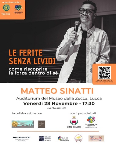 Un evento aperto alla cittadinanza per parlare di violenza psicologica, emotiva e relazionale: quella che non lascia segni visibili sul corpo, ma che può ferire profondamente l’identità e il valore personale. Si intitola “Le ferite senza lividi: come riscoprire la forza dentro di sé” l’incontro che si terrà a Lucca il 28 novembre alle ore 17:30 presso l’Auditorium del Museo della Zecca, con la partecipazione di Matteo Sinatti, autore e formatore, da anni impegnato in percorsi di consapevolezza e rinascita interiore.