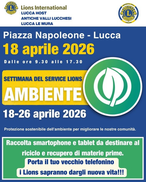 Parallelamente, i riflettori si accenderanno sulla “Settimana del Service Lions sull’Ambiente”. Presso l’area dell’evento sarà allestito un punto di raccolta speciale per vecchi smartphone e tablet. I dispositivi elettronici ormai inutilizzati potranno essere consegnati dai cittadini per essere destinati al riciclo professionale, trasformando i "rifiuti tecnologici" in una risorsa per l’ambiente e riducendo l’impatto estrattivo delle terre rare.