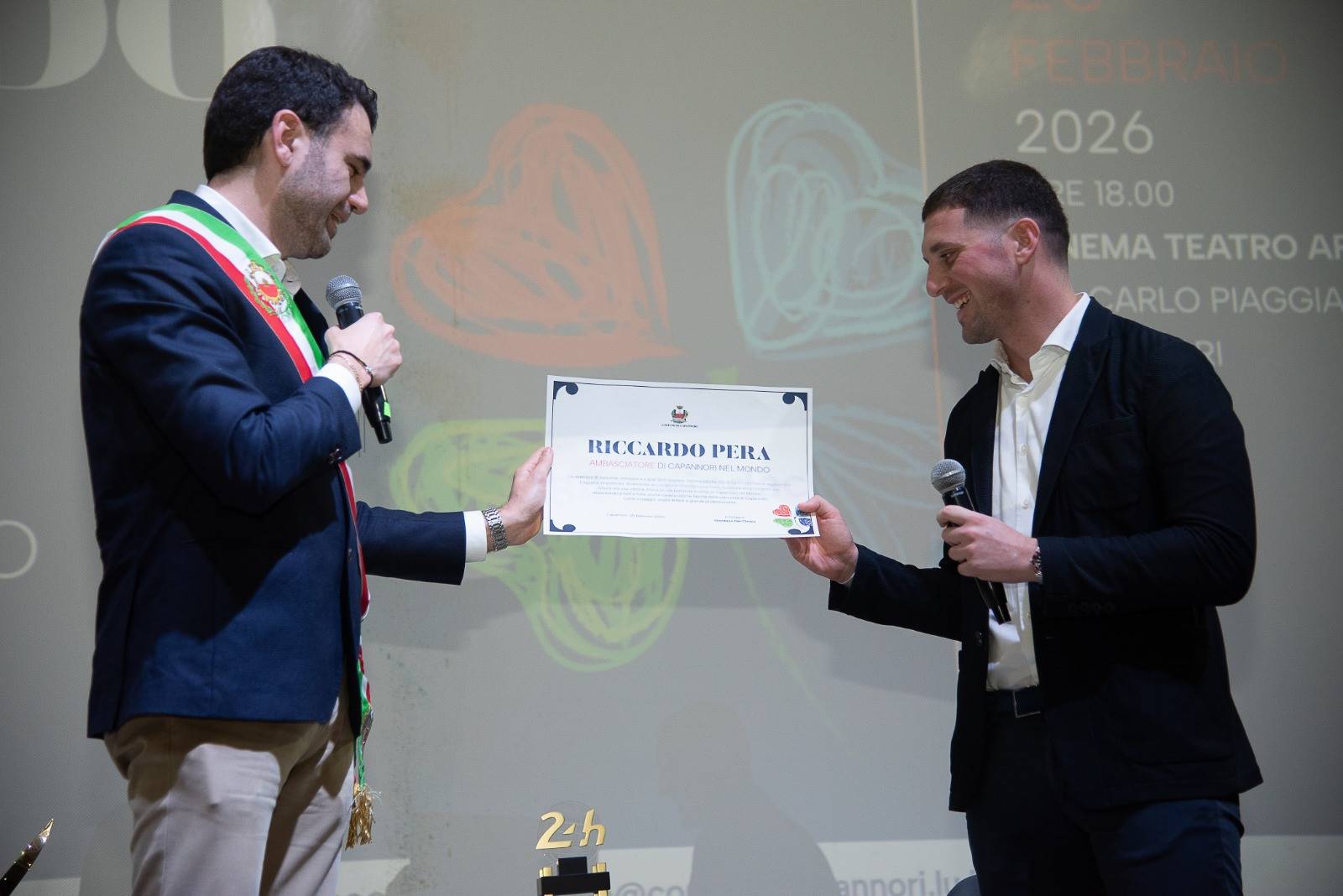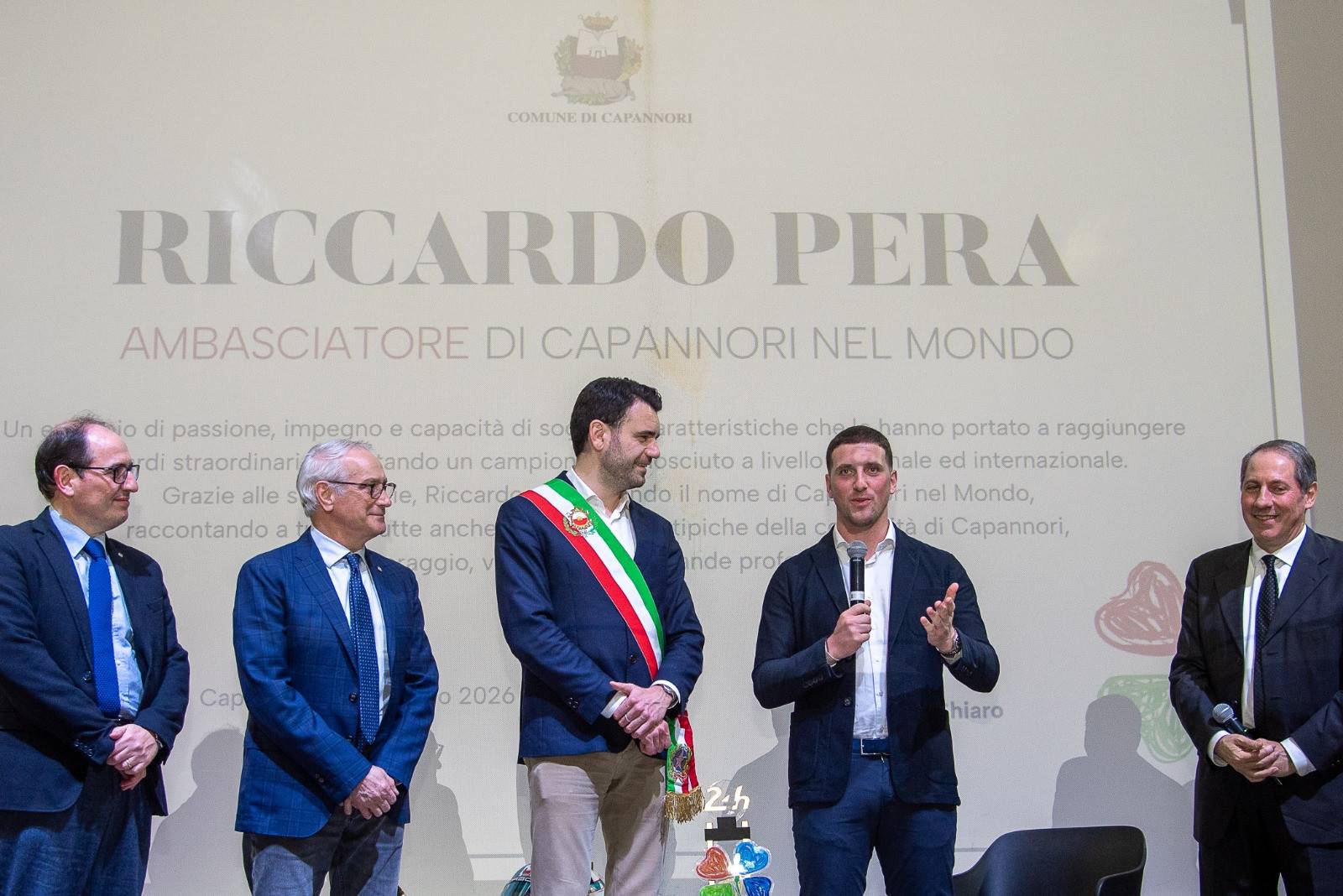 “E’ con vero orgoglio che ho consegnato a Riccardo Pera l’onorificenza di ‘Ambasciatore di Capannori’ – spiega il sindaco Giordano Del Chiaro -. Il suo percorso sportivo e professionale è un esempio di dedizione, passione e successo che, oltre ad incarnare i valori positivi dello sport, contribuisce a portare il nome di Capannori nel mondo e a promuovere il suo territorio, la sua storia e le sue attività. Riccardo è anche un esempio per le nuove generazioni, perché ha dimostrato che con impegno, passione e dedizione i propri sogni possono diventare realtà. Ringrazio per la presenza Stefano Gori, Valter Nieri e Ivano Fanini nominati in passato ‘Ambasciatori di Capannori’ per il settore sportivo e il Panathlon Club Lucca insieme a Matteo Nardini per la loro collaborazione alla realizzazione di questo evento”.