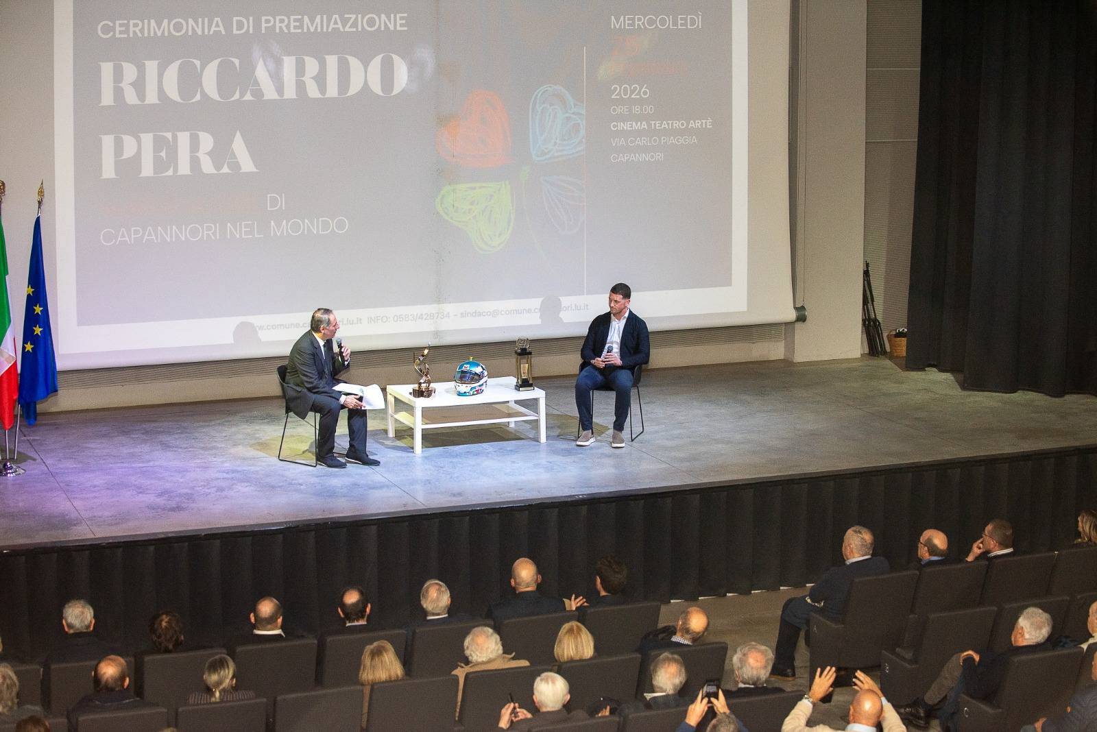 Grande partecipazione ieri pomeriggio (mercoledì) ad Artè per la cerimonia di conferimento dell’onorificenza di ‘Ambasciatore di Capannori’ al pilota automobilistico capannorese Riccardo Pera che nel 2025 ha conquistato il titolo mondiale nella categoria LMGT3 del FIA World Endurance Championship.