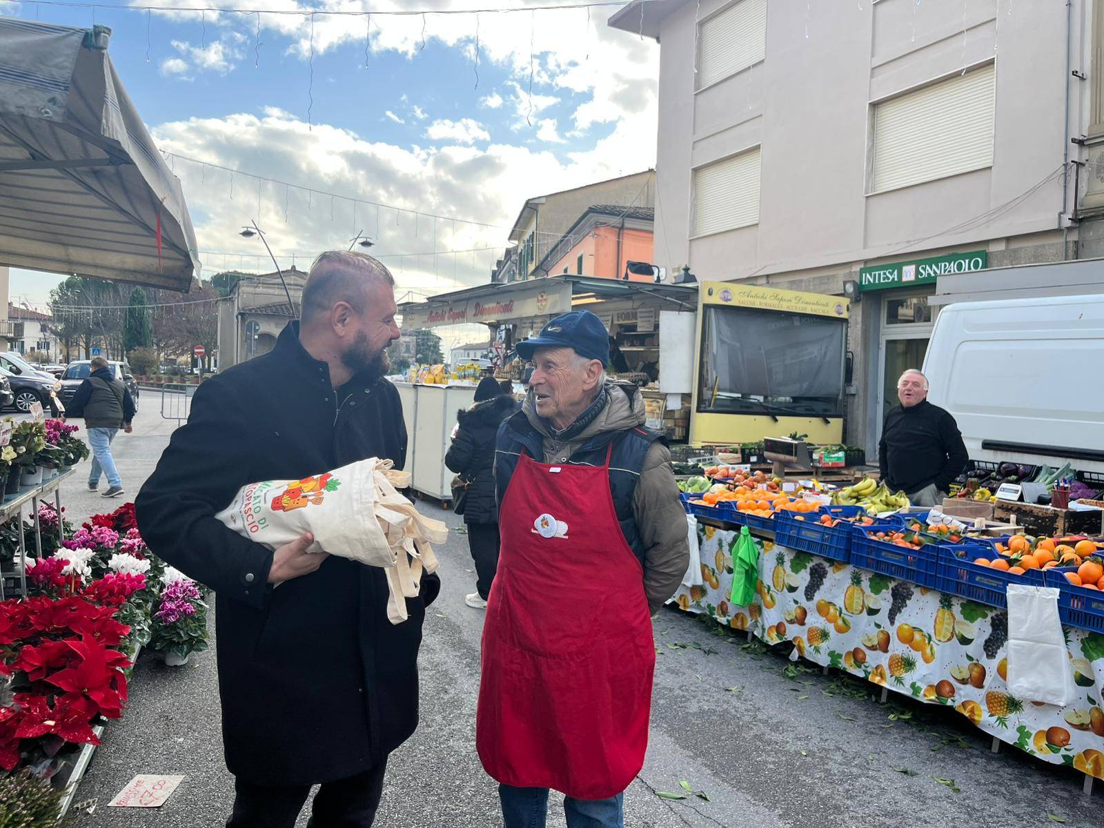 Spille identificative e borse shopper in tela, con su scritto "tradizione qualità e convenienza", per gli operatori, e per i clienti, del nuovo mercato settimanale di Altopascio: la distribuzione, avvenuta ieri mattina (giovedì 18 dicembre), segna un nuovo passo nel percorso di riqualificazione del mercato del giovedì e nella nuova organizzazione dell'area mercatale nel centro cittadino voluta dall'amministrazione D'Ambrosio.