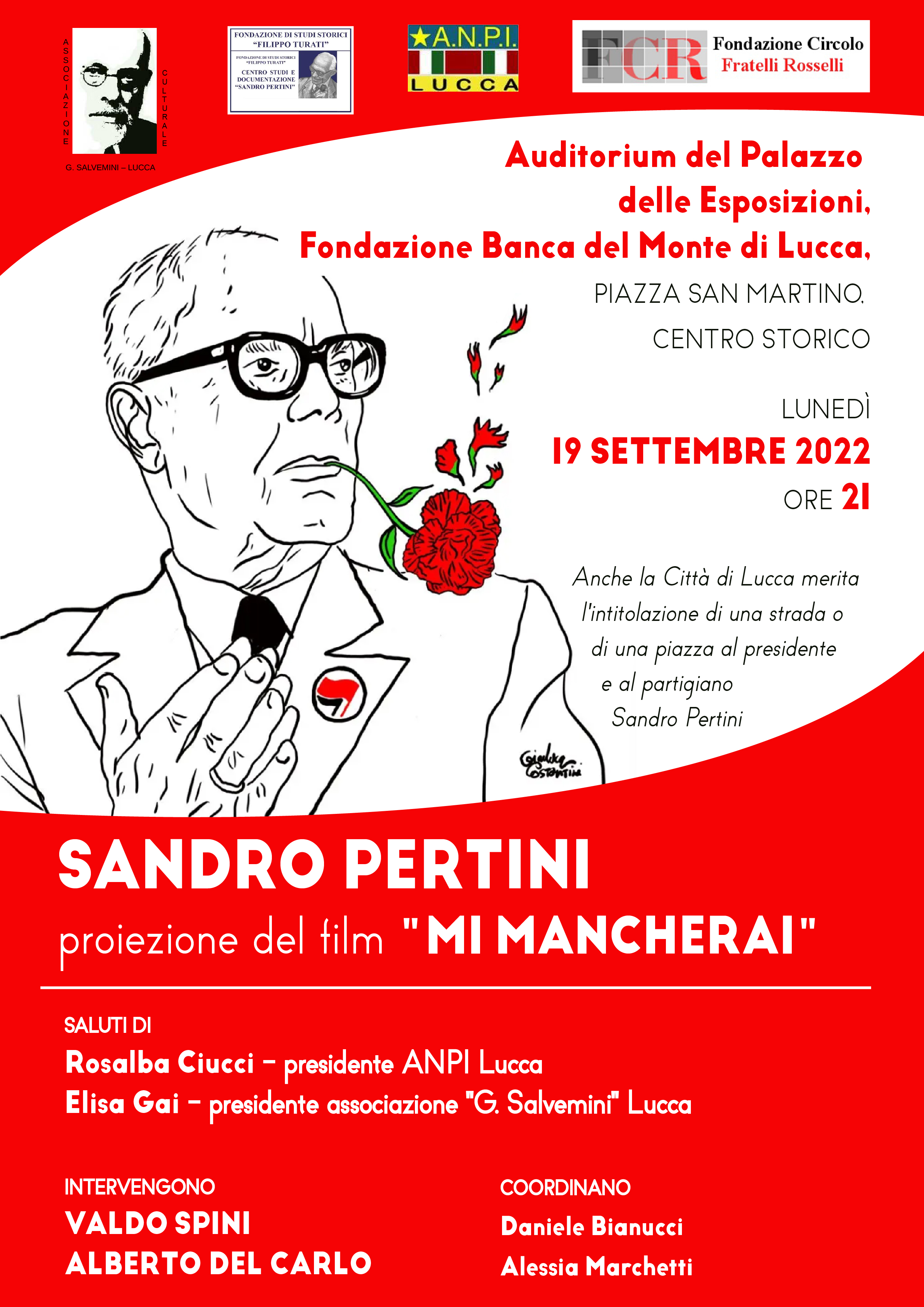 L’appuntamento, gratuito e aperto a tutti, è per lunedì 19 settembre, alle ore 21, nell’auditorium del Palazzo delle esposizioni della Fondazione Banca del Monte di Lucca, in piazza San Martino, nel Centro storico: al termine della proiezione del film, interverranno il professor Valdo Spini e Alberto Del Carlo, che riporteranno la testimonianza del loro rapporto diretto con Pertini. Insieme a loro, anche la presidente di ANPI Lucca Rosalba Ciucci e la presidente dell’associazione Salvemini Elisa Gai; a moderare la serata, Daniele Bianucci e Alessia Marchetti.