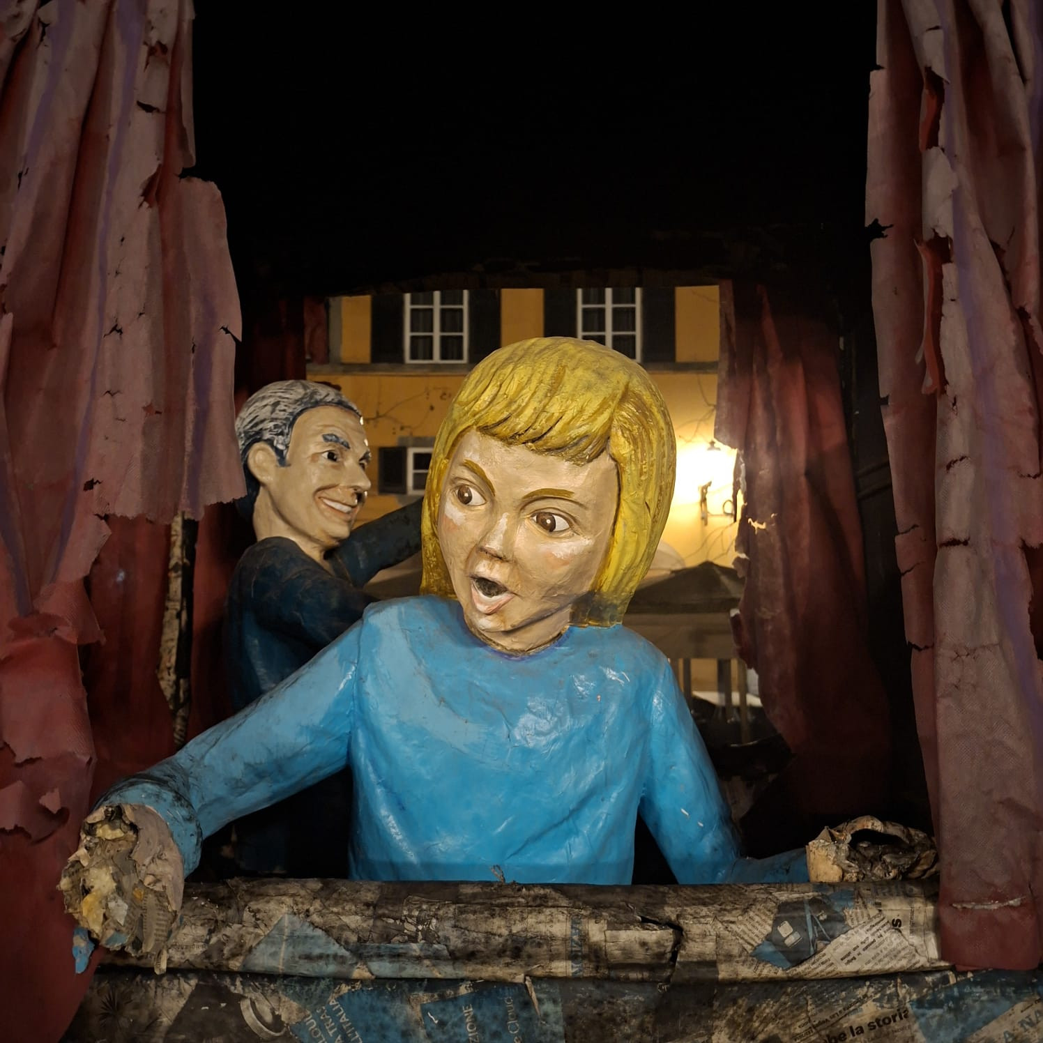 Gabriele Olivati, capogruppo in consiglio comunale di Lucca Futura, commenta con perplessità: “Nella seduta del Consiglio Comunale di martedì 17 ho fatto una raccomandazione per segnalare il problema. C’è un motivo se i carri del Carnevale di Viareggio non possono uscire dagli hangar in caso di pioggia insistente: queste strutture di cartapesta, sebbene impermeabilizzate, hanno dei limiti evidenti di fronte all’esposizione eccessiva all’acqua. Figuriamoci cosa può accadere se installate per settimane all’aperto in uno dei periodi più piovosi dell’anno. Inoltre, una scultura così delicata è a rischio vandalizzazione. Passando da piazza Napoleone ora sembra di entrare nel set di un film horror più che di un’installazione carnevalesca”.