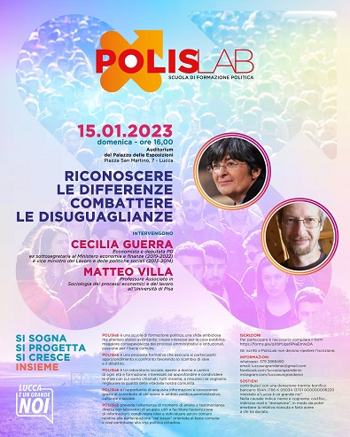 Dopo la sessione inaugurale che ha visto un'ampia partecipazione, domenica 15 gennaio alle ore 16 nell'Auditorium del Palazzo delle Esposizioni di Lucca (Fondazione Banca del Monte in Piazza San Martino 7) si svolgerà il secondo incontro con la presenza di due autorevoli esperti Matteo Villa e Maria Cecilia Guerra che introdurranno il tema e si confronteranno con i partecipanti a PolisLab.