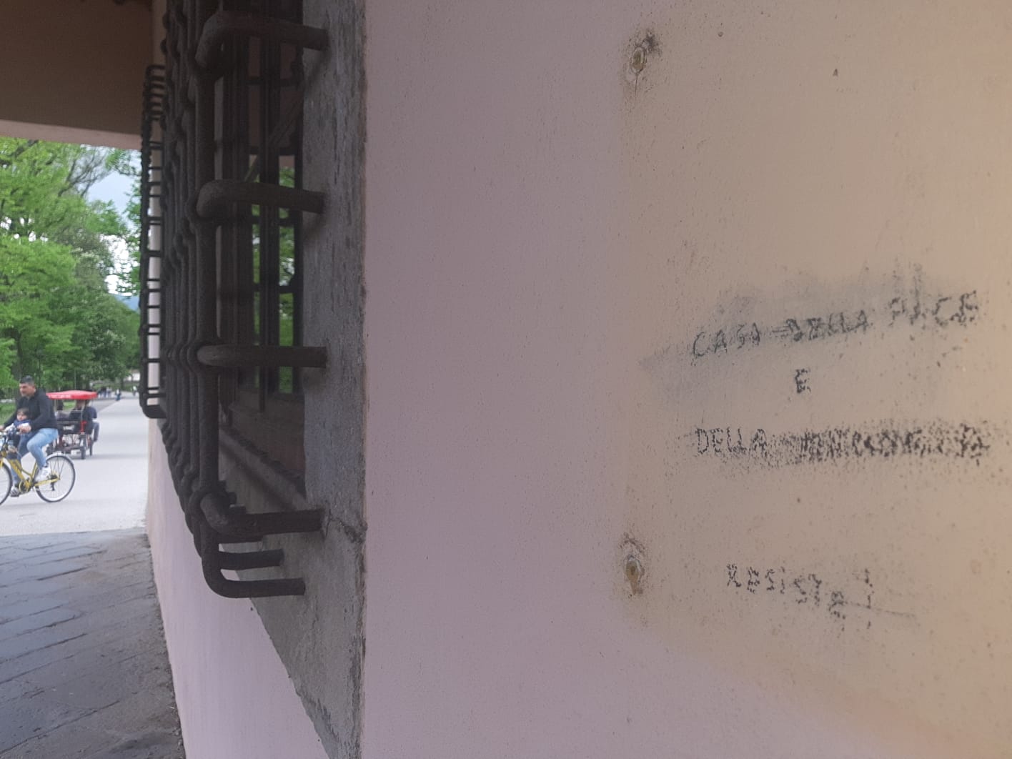 "Sarebbe bastato fare una cosa semplice: chiedere scusa. La sola cosa da fare dopo questo prepotente atto vandalico era stigmatizzarlo, dissociarsene, e dire di aver commesso un errore grave nei confronti di tutta la città pubblicando sui social. Invece, plaudendo a questo gesto compiuto da un suo attivista la consigliera Vietina ha sottolineato che il suo strumento non è il dialogo ma la protesta a oltranza, portata finanche su edifici pubblici di rilevanza culturale - accusa Lucca 2032 -. La cosa grottesca di tutto ciò, di un atteggiamento così astioso e spezzante, è il fatto che sia sbandierato a pro di una associazione che professa la pace".
