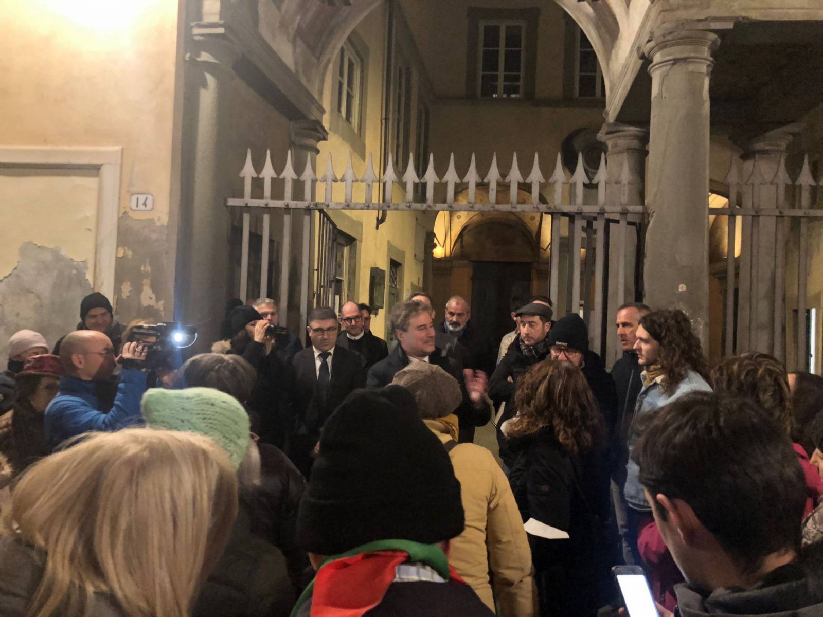 Terminate le testimonianze, il presidente Torrini ha dato inizio al dibattito concedendo la parola al capogruppo di sinistra Civica Ecologista Daniele Bianucci che, dopo aver espresso la più sincera solidarietà umana ai vari interlocutori che hanno reso delle testimonianze su fatti a loro accaduti, si è apprestato a leggere un documento, anche a nome di tutti gli altri gruppi consiliari di opposizione, che alcuni cittadini rimasti all’esterno di palazzo Santini gli hanno chiesto di esporre.